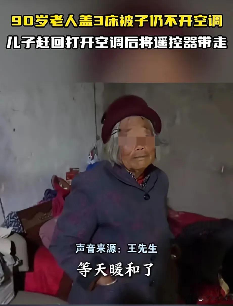 90岁农村老母亲宁愿盖三床被子,也不愿意开空调,因为她觉得空调费电! 这位老人虽然年事已高,但身体还算硬朗,住的是农村那种传统的土坯房,在她看来冬天再冷,只要被子够厚就能扛过去,没必要开空调取暖! 他的儿子心疼母亲,认为这么冷的天不开空调孙涛的话,会把人冻坏了。于是他回家打开空调后把遥控器带走了,认为这样屋里就不冷了! 虽然儿子是一片孝心,但老母亲已经过惯了节俭的生活,可能会不赞同这一做法,等儿子走后说不定会给空调断电! 所以,他的儿子可以把母亲接到自己家里过冬,这样既能尽孝,又能让老人温暖过冬!