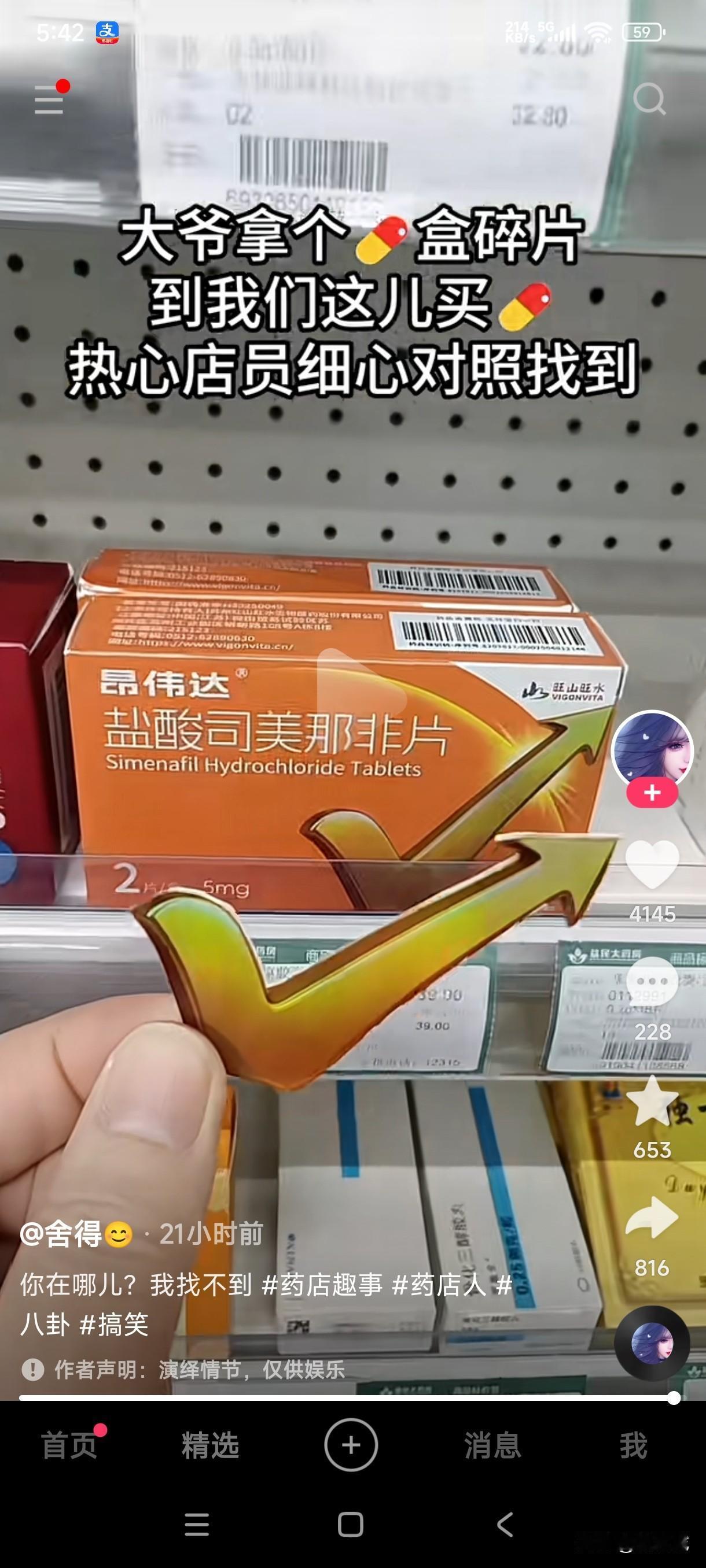 大爷拿着药盒上面对号的图案找店员买药,没想到店员费了九牛二虎之力终于给大爷找到他要买的药了,看来在药店当个店员也不是一件容易的事,不仅要孰能技巧,而且还要有辨别药盒图案的能力不是吗? 还从来没有见过如此幽默风趣的大爷,买药记不住名字,也不拿药盒,居然拿药盒上面的图案买药,这大爷也真是个人才,最终还是店员眼尖不是吗?