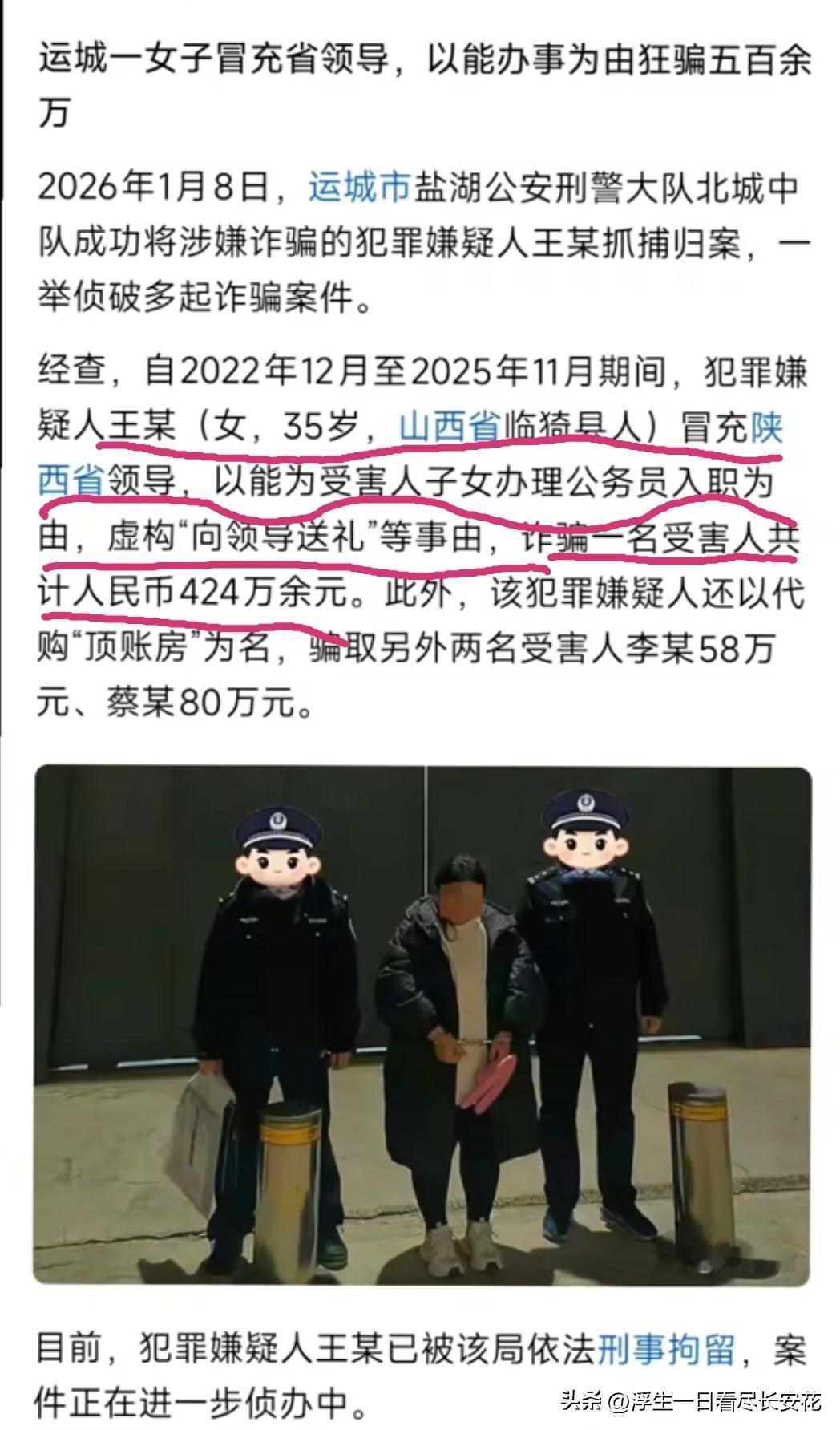 论运城人对西安公务员的渴望程度,大家不妨看看这个新闻。山西运城一女子冒充领导竟然成功骗到424万!不过有网友表示:“虽然骗子最可恨,但是被骗的也没有一个是冤种。” 一般而言,事业单位编、公务员都是逢进必考,如果考不上但又很想进,怎么办?很多人能想到的捷径就是疏通关系,这就需要拿钱找人办事了,如果办不成怎么办?办不成只能说明靠钱蒙混过关走后门的路子行不通,还得考试。 一个人能诈骗到上百万,如果不是口碑好,她是很难成功的。是不是说她之前成功帮到过别人呢?可能性很低,还得考,骗子能做的就是把你带到考场,能不能考上还得看自己的造化,但钱是一分不会少的。
