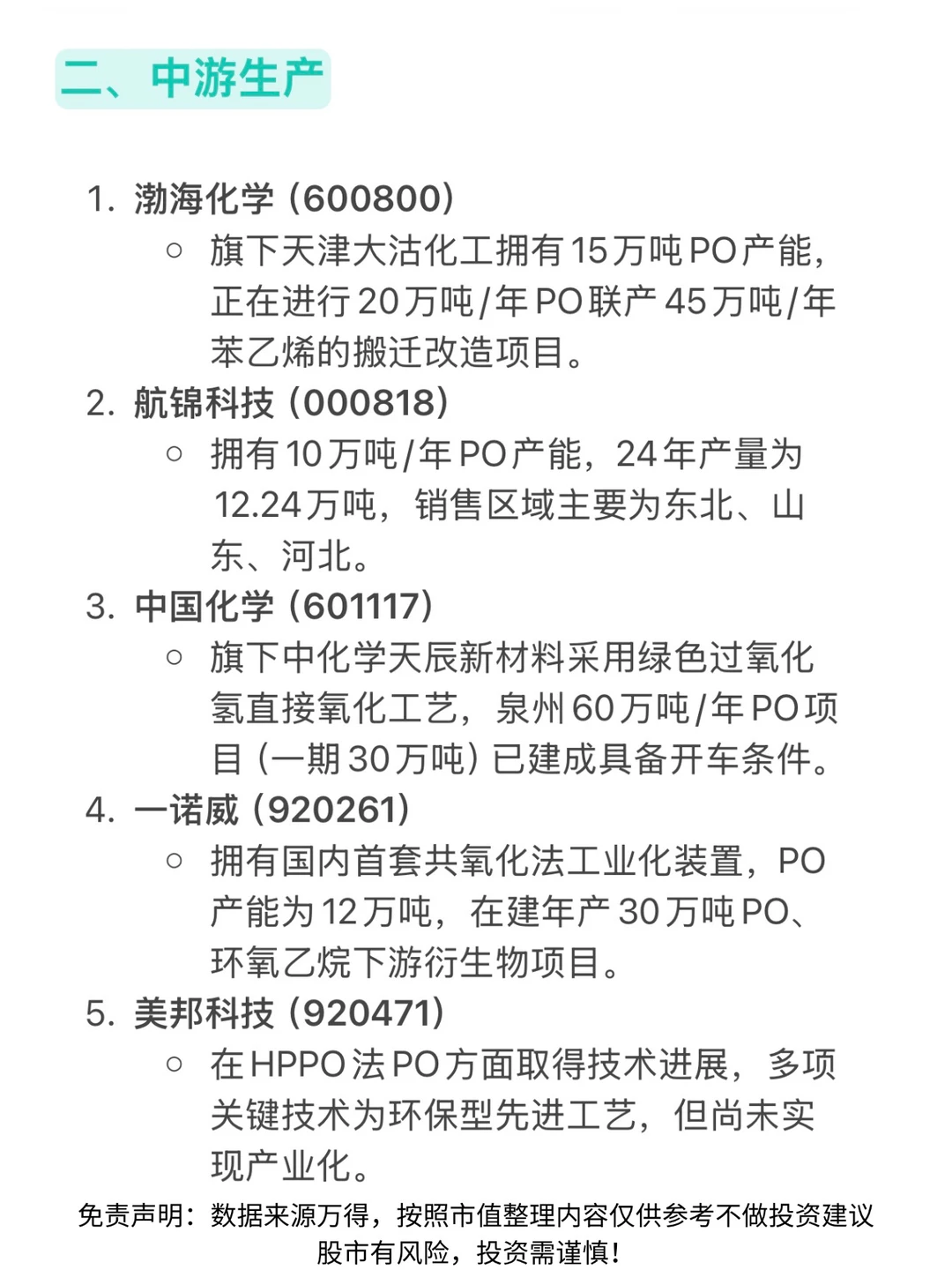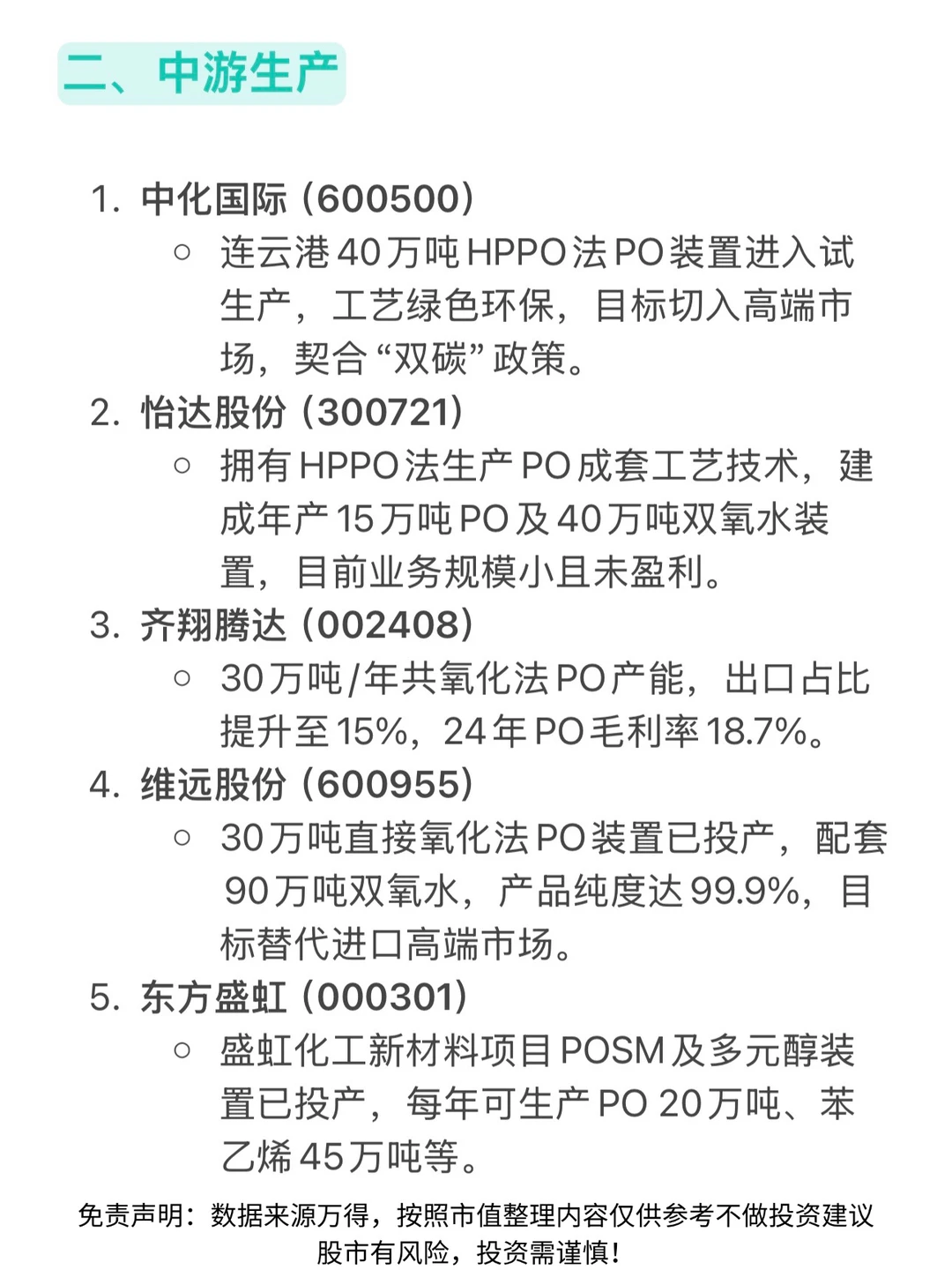 🔥A股环氧丙烷(PO)板块梳理