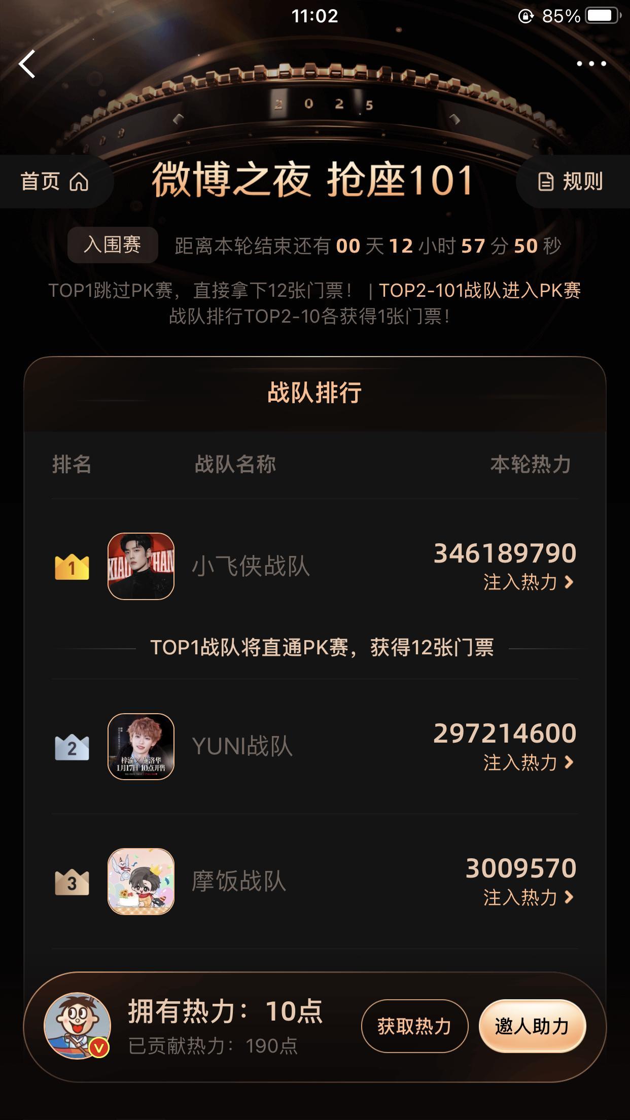 微博之夜抢票101还剩一天了,肖战粉丝小飞侠战队目前3.13亿热力值第一,领先第