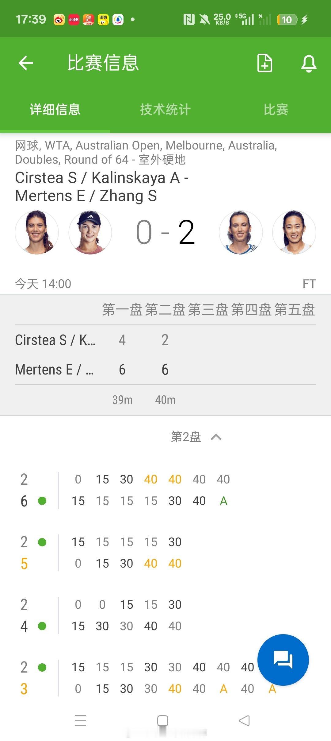 小花小草资讯 【2026澳网】女双第一轮4号种子🇨🇳张帅/🇧🇪梅尔滕斯6-4/6-2🇷🇺卡林斯卡娅/🇷🇴科斯蒂亚收获130分 双打即时排名🇨🇳张帅:14(+1)