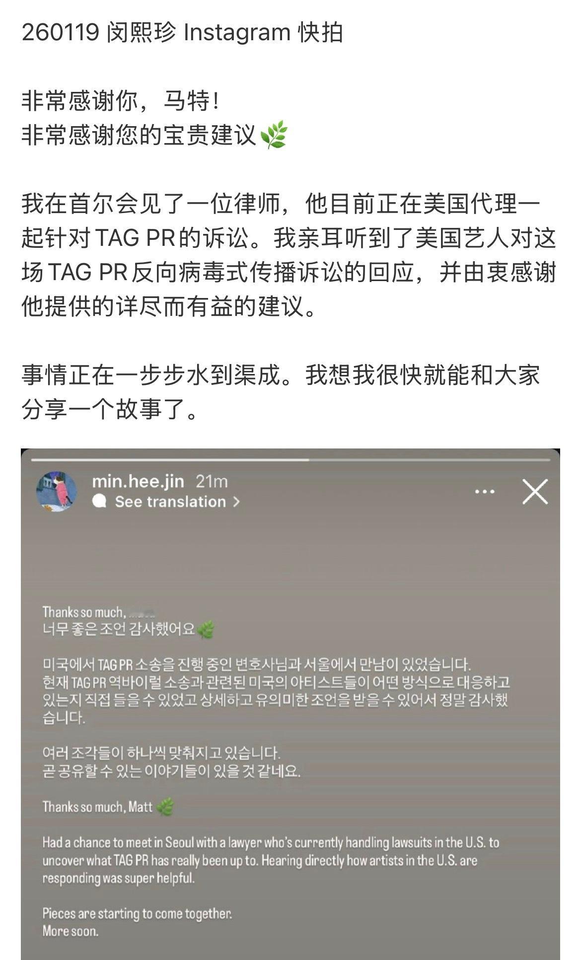 🧢发了个ins说等事情清晰后将故事分享出来,吓得hybe立马申请了仅限当事人查看庭审记录的限制