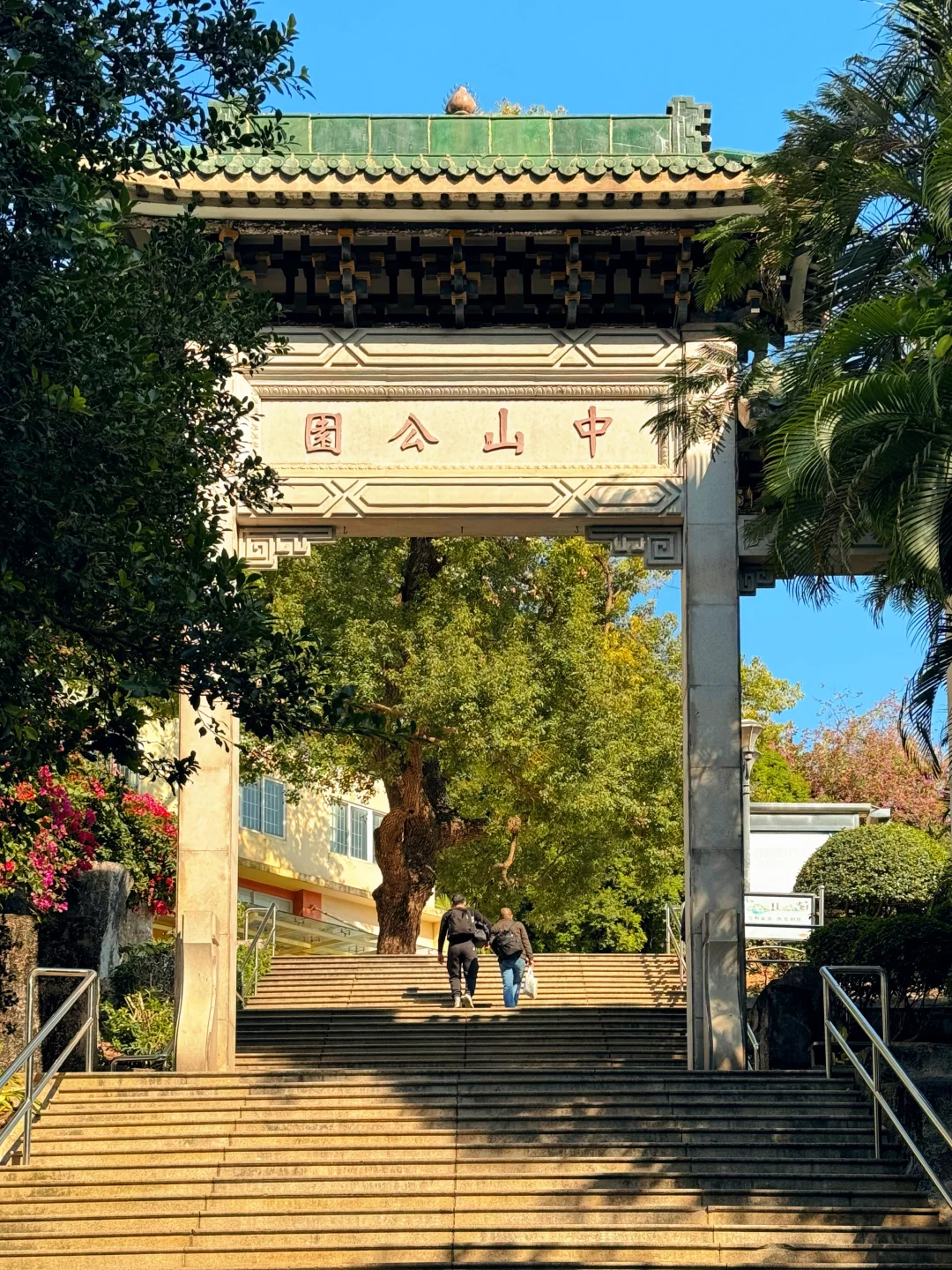 🔹中山公园:爬一段石阶上山,不到10分钟就能俯瞰整片老城区。登顶的长阶梯本身就很出片,站在山顶观景台,整个老街区的骑楼尽收眼底