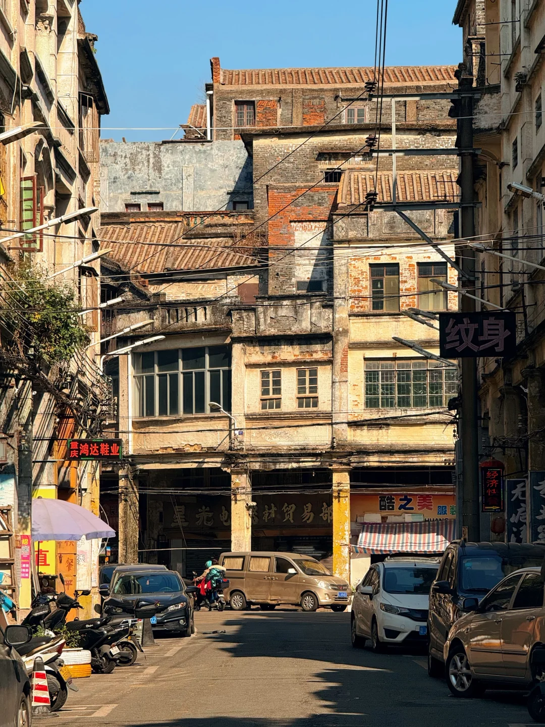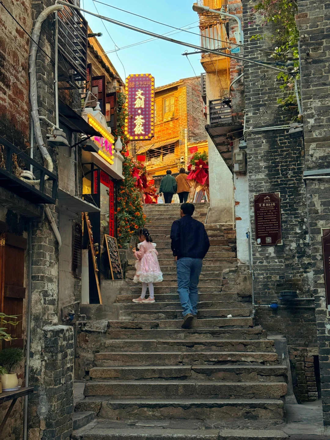 🔹墟顶历史文化街区:《狂飙》高启强同款机位!300米长的骑楼老街藏着「强盛小灵通」取景地,斑驳的「三十三级水埠头」石阶,长廊、旧招牌、复古电影感拉满