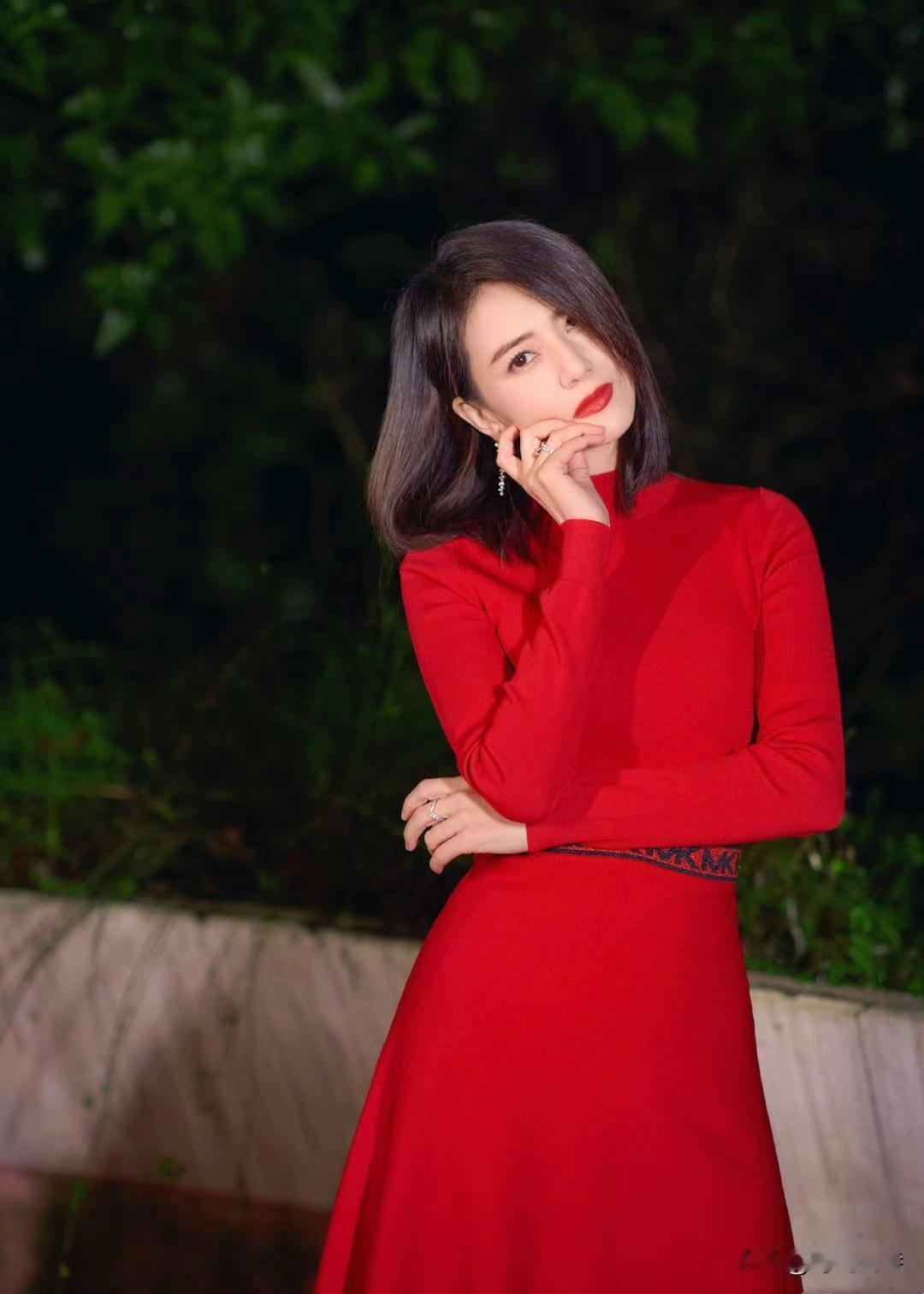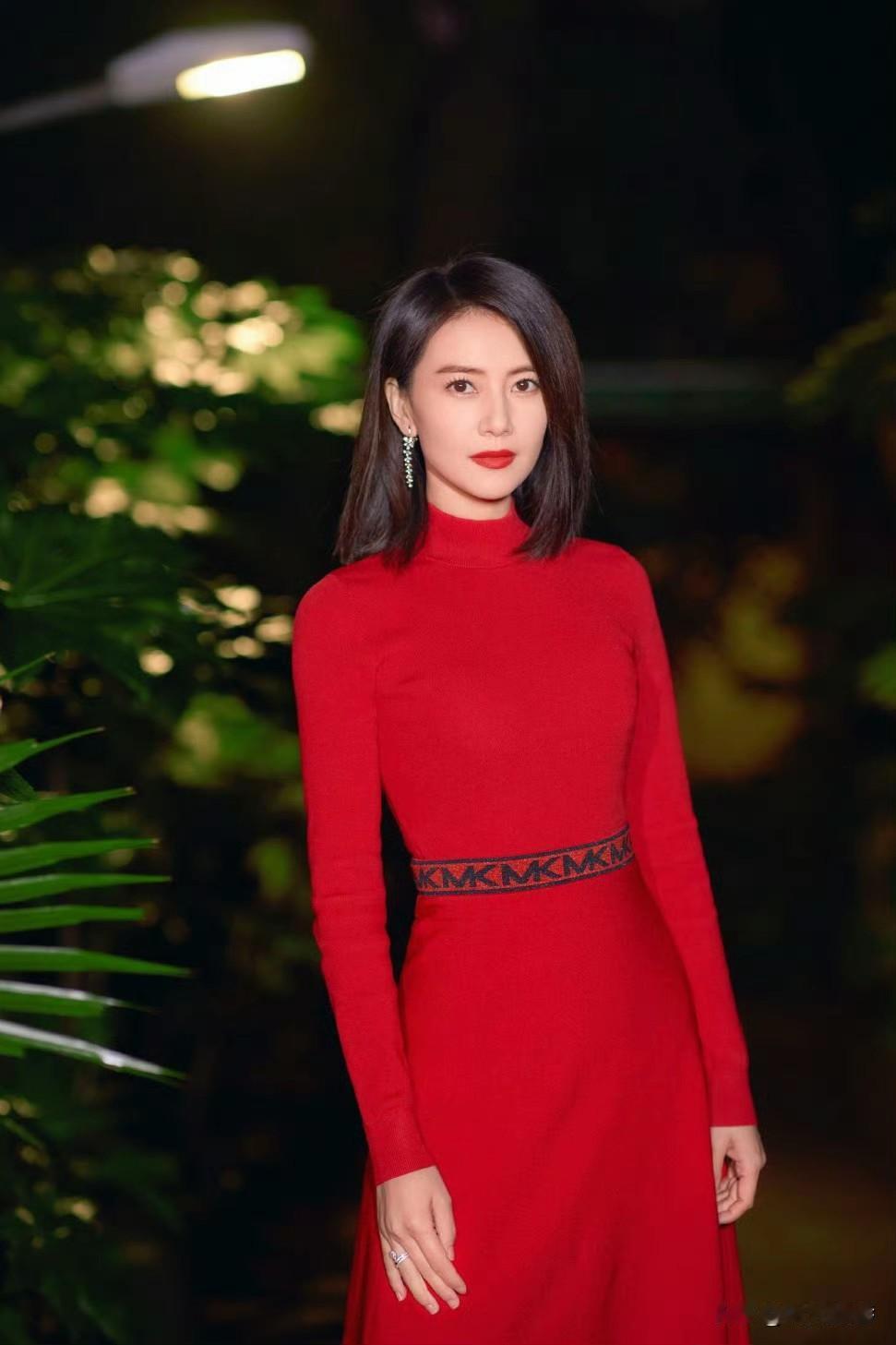高圆圆这件正红针织连衣裙优雅大气,高领设计衬出精致锁骨,收腰剪裁勾勒曼妙曲线,红唇与红裙相映成趣,尽显明艳动人的东方韵味之美!令人观之赏心悦目!