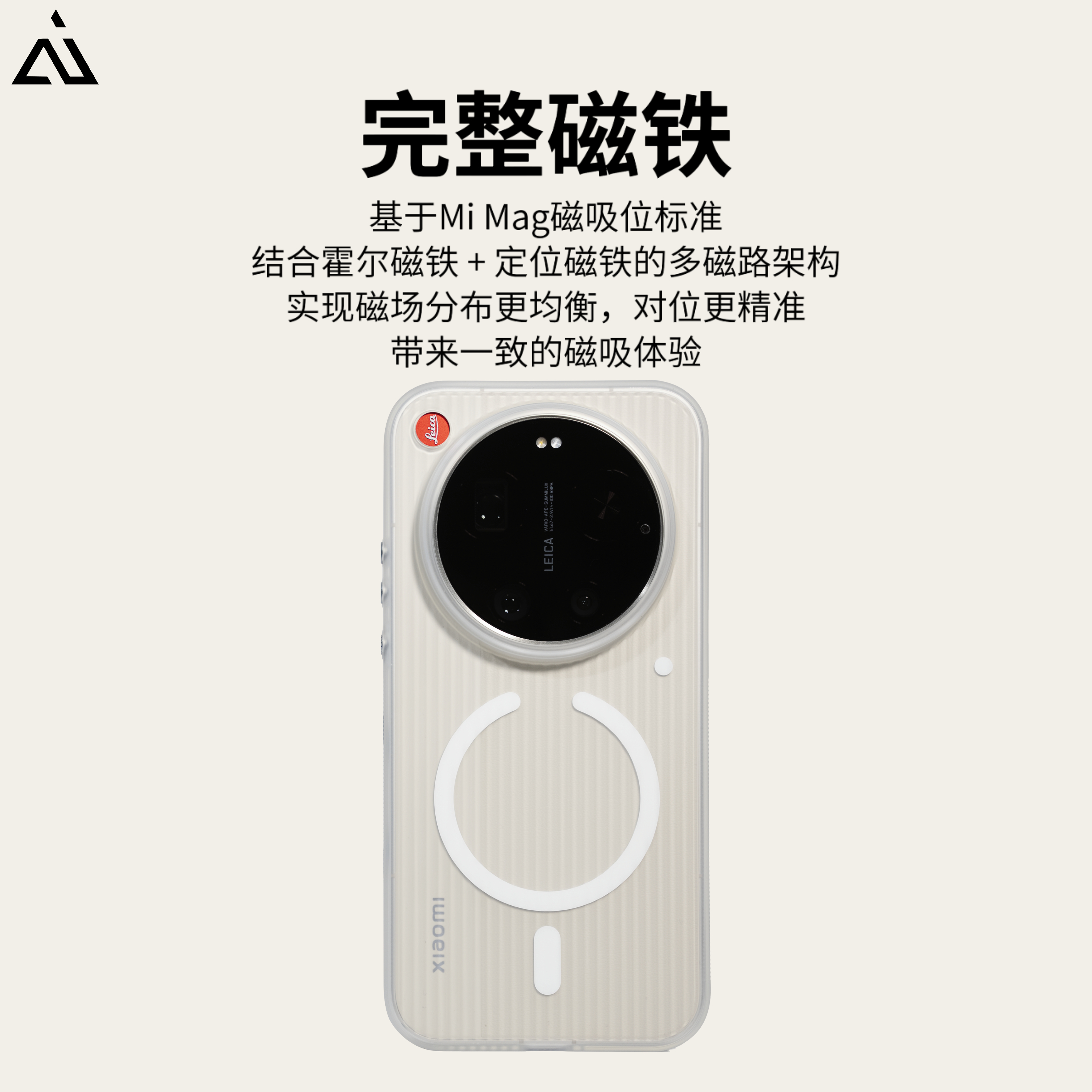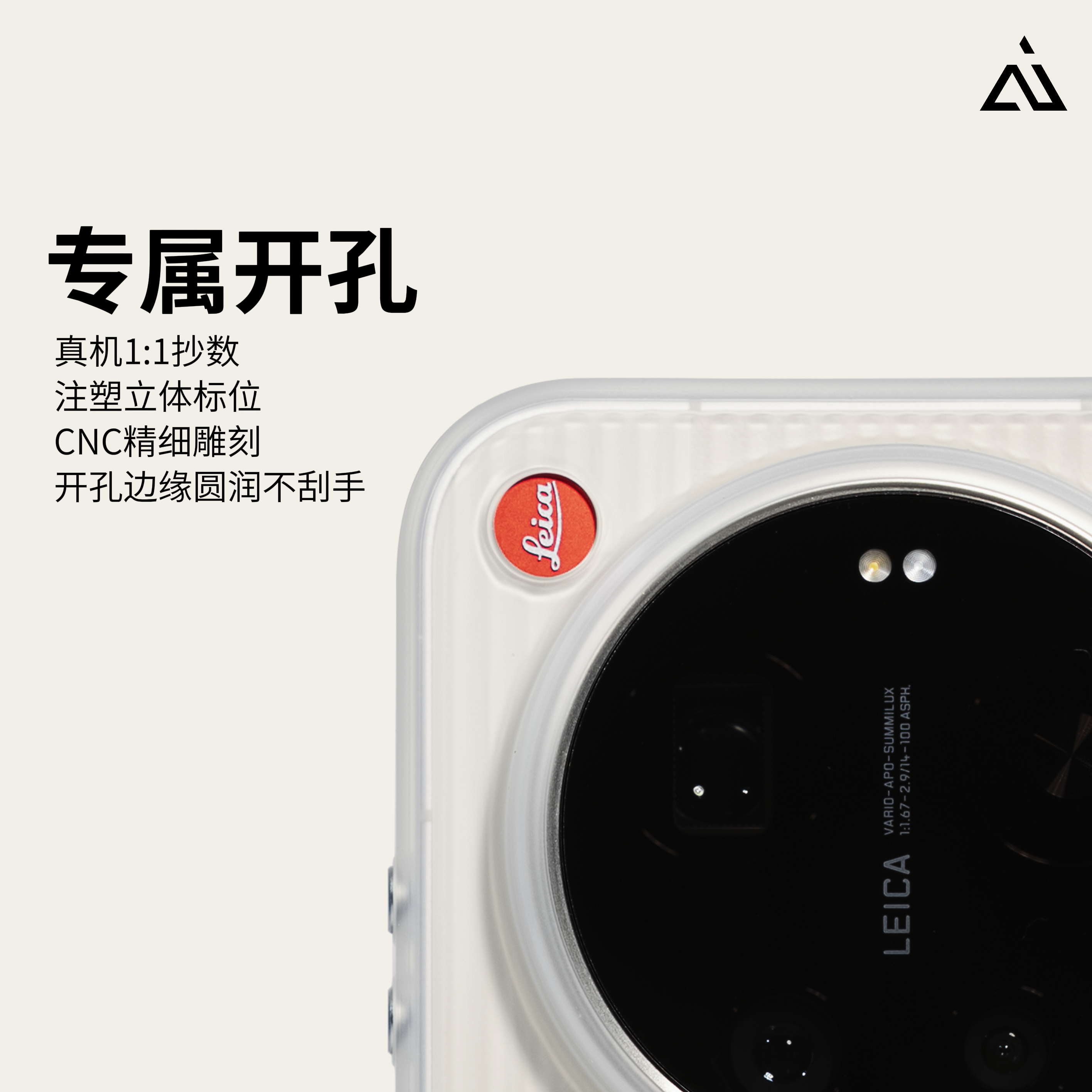 🆕全新小米17ultra 「光栅」手机壳❄️经典配色|雾凇白一体化透白基调,素雅且耐看镂孔露出红标点缀,强化视觉焦点低调之中,尽显影像旗舰的精致感与气质🔘精致按键|兼顾防护与手感防尘级独立金属按键结构,有效降低灰尘进入风险音量键采用阳极氧化磨砂工艺,触感细腻电源键融入经典珠宝立体小金字塔钉纹装饰,层次分明,盲按亦从容!出色的握持体验|1:1还原机身纹理中框纹理基于真机1:1抄数复刻立体滚花纹路,相机般握持体验提升摩擦系数,握持更稳,防滑更安心🔍精密开孔|严谨对位真机 1:1 抄数建模注塑立体标位结合 CNC 精细雕刻工艺开孔边缘过渡圆润,触感顺滑,不刮手孔位精准,无冗余设计,兼顾美感与功能完整性🧲完整磁铁|符合 Mi Mag 标准基于 Mi Mag 磁吸位标准 设计采用霍尔磁铁 + 定位磁铁的多磁路架构磁场分布更均衡,对位更精准带来稳定、一致的磁吸与无线充电体验💎兼顾外观设计、细节质感与使用体验这是一款真正“好看,也好用”的手机壳📅 1 月 22 日 16:00|正式上新