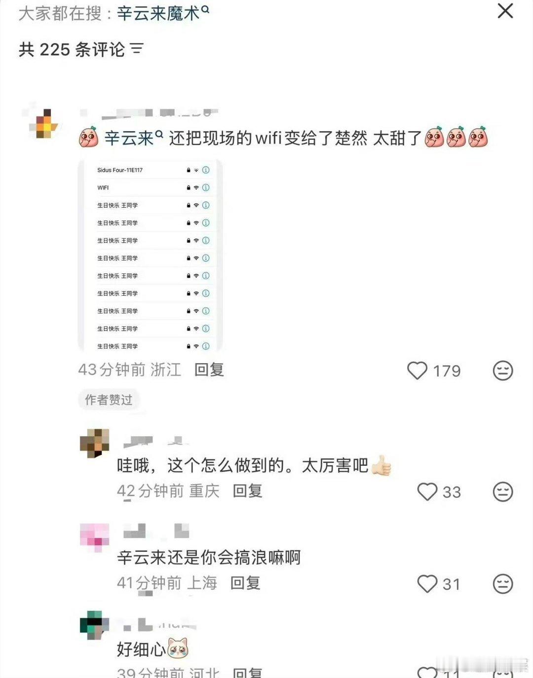 辛云来改wifi名字给王楚然庆生辛云来生日快乐王同学辛云来改wifi名字给王楚然庆生,生日快乐王同学,