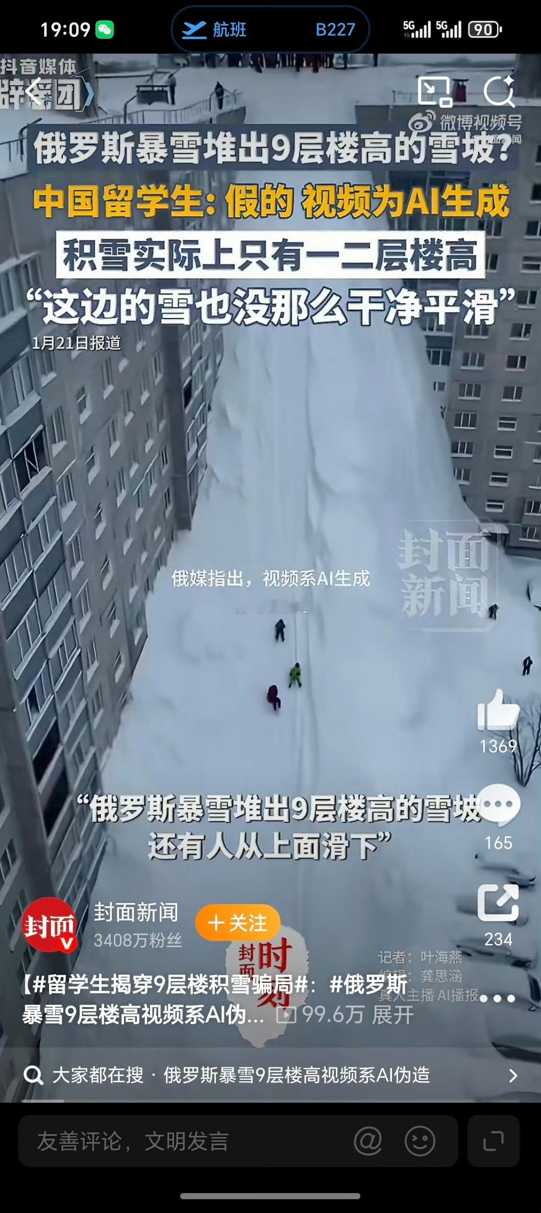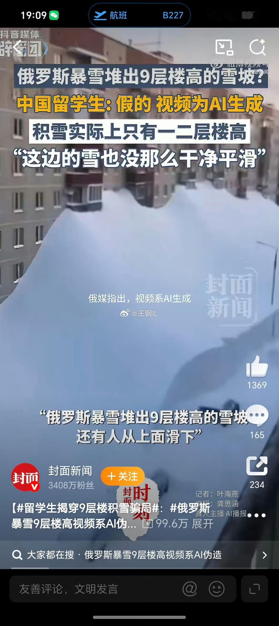 留学生揭穿9层楼积雪骗局我就想知道这个封面新闻到底算是个什么媒体啊?一天到晚发的就是一些为了流量博眼球的新闻,也不用验证一下是不是 AI,就开始传播。造谣的是它,辟谣的也是它。