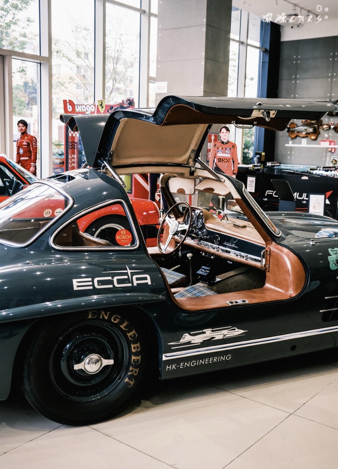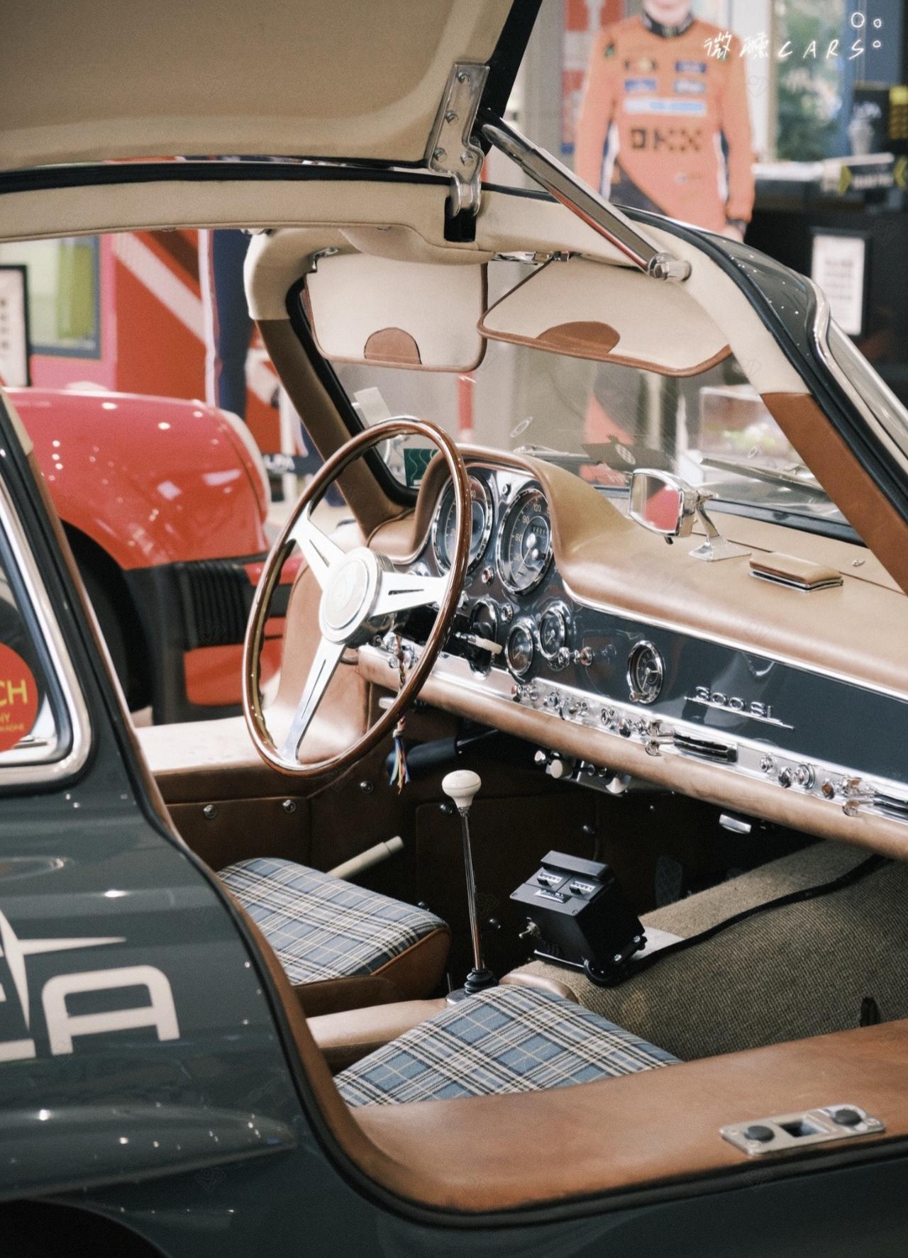 经典情怀老车汽车摄影奔驰鸥翼门300sl超跑豪车内燃机的魅力