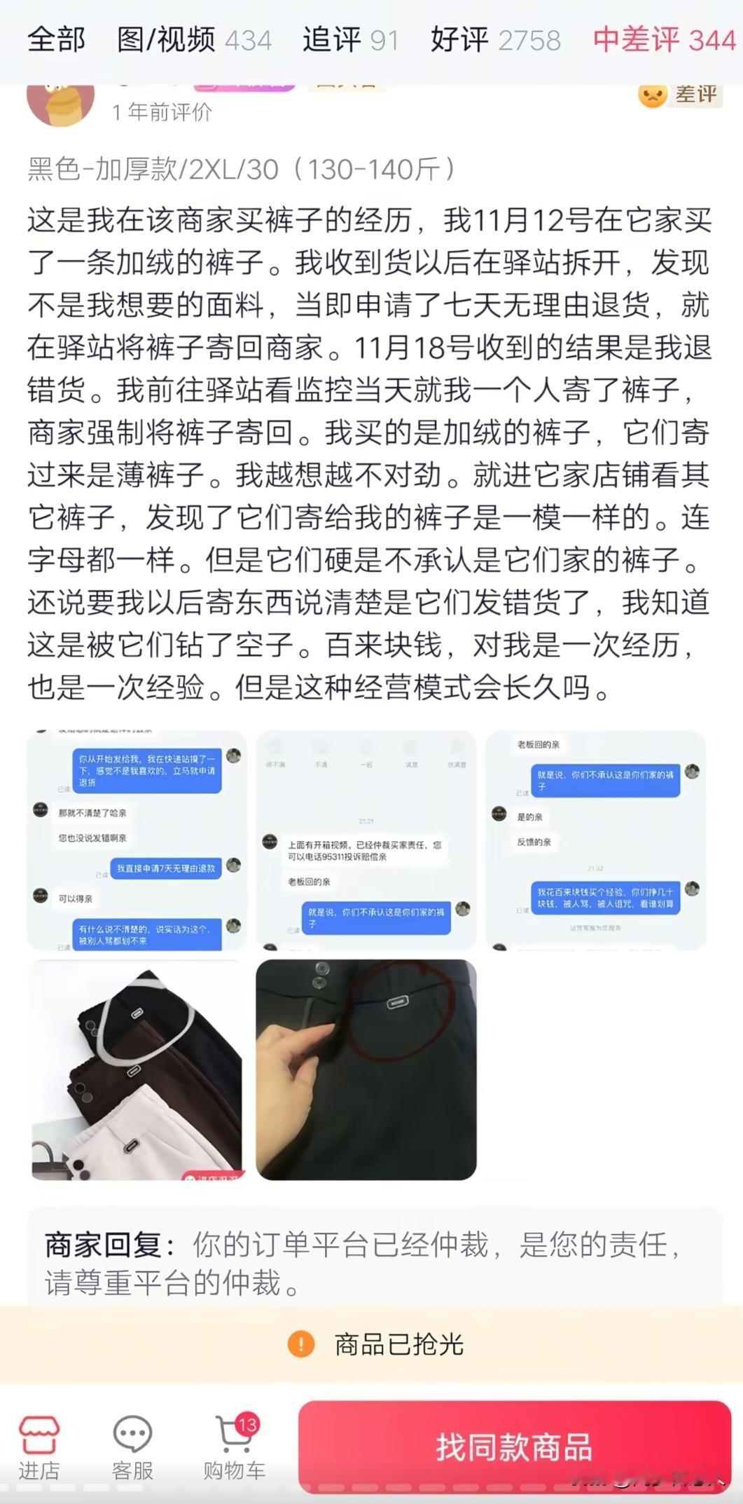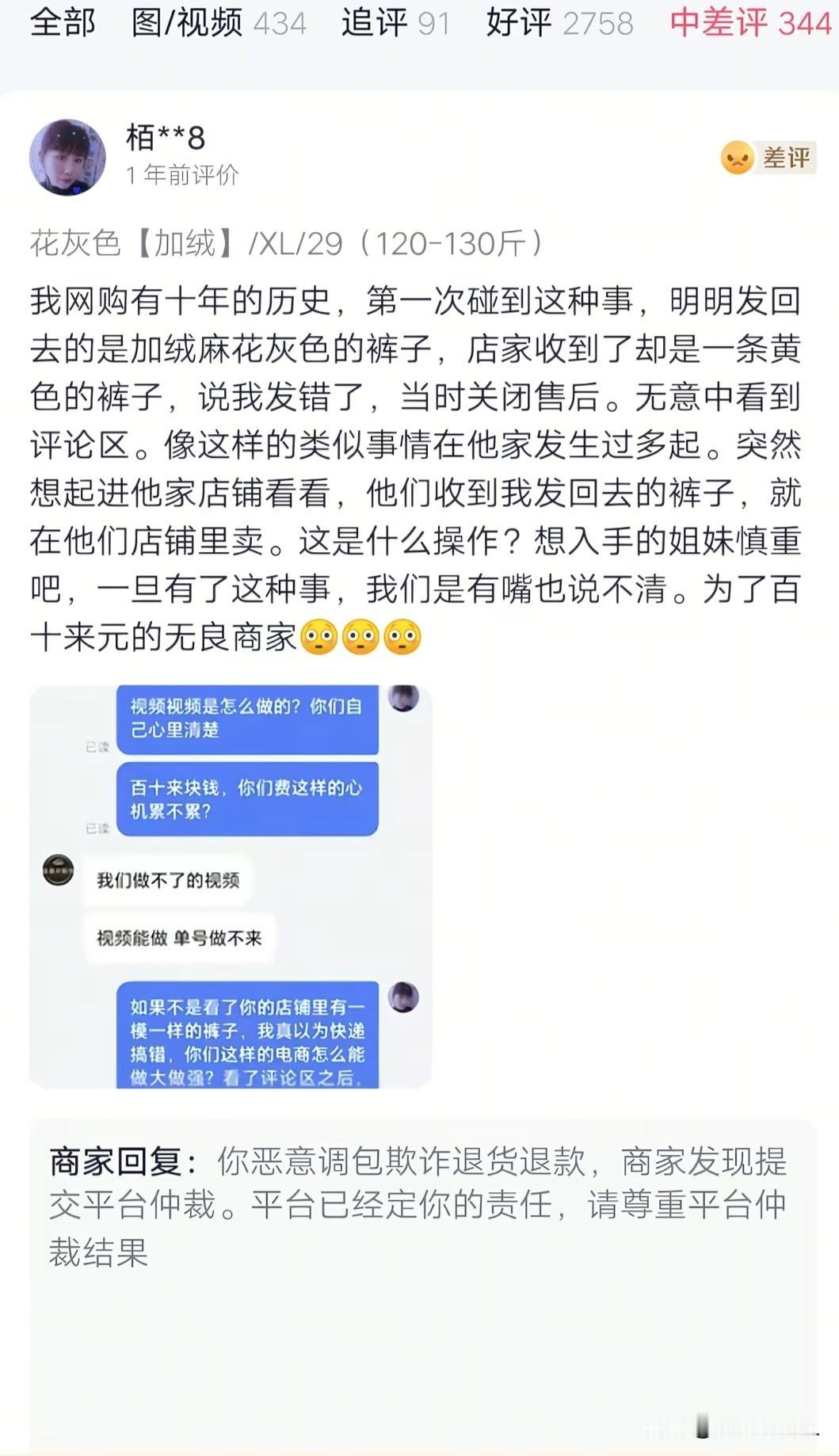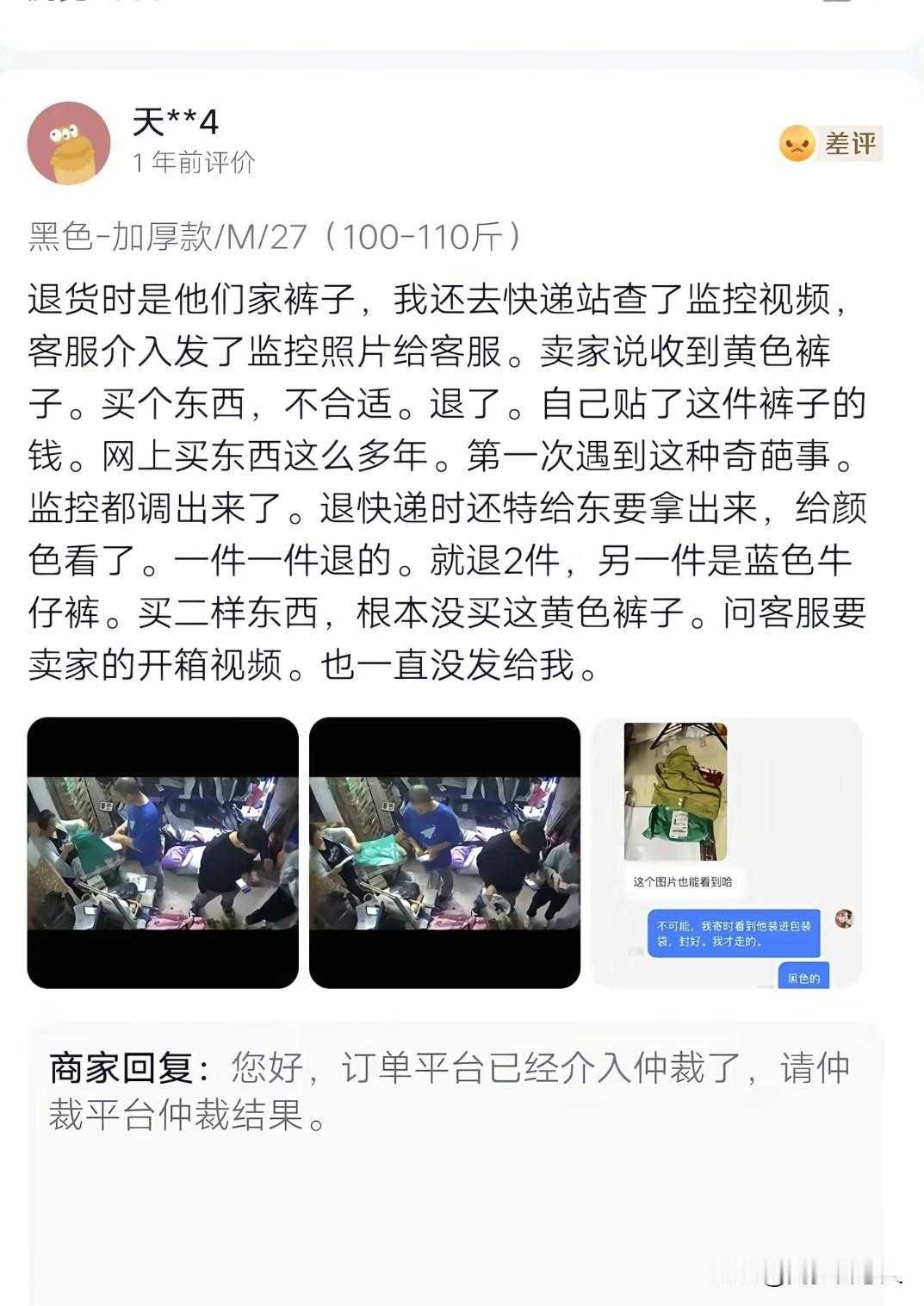 商家恶意调包坑顾客,是不是也得去踩缝纫机?一年前就有很多人在这家服装店被恶意调包退货,还好我几乎不在网上买衣服,要不然平时退货的时候,我可是从来不会录制什么寄件视频。 看了不少差评商家的回复,他们就是抓住了这一点,买家退货寄过去没有录视频,他们收货却有,平台就会根据商家的视频为卖家站台。 因此就算是买家差评,商家也可以理直气壮的回复道:“请尊重平台的仲裁”!其他的消费者看到后,会觉得是这个买家想薅羊毛没成功,怒给差评。 哪憔是买家有寄件视频,商家又会把锅甩给快递员,说是被快递员掉包了! 买家退货掉包坑商家的人,已经有人被抓进去踩缝纫机了,商家恶意调包坑买家的行为,是不是也得进去呢?