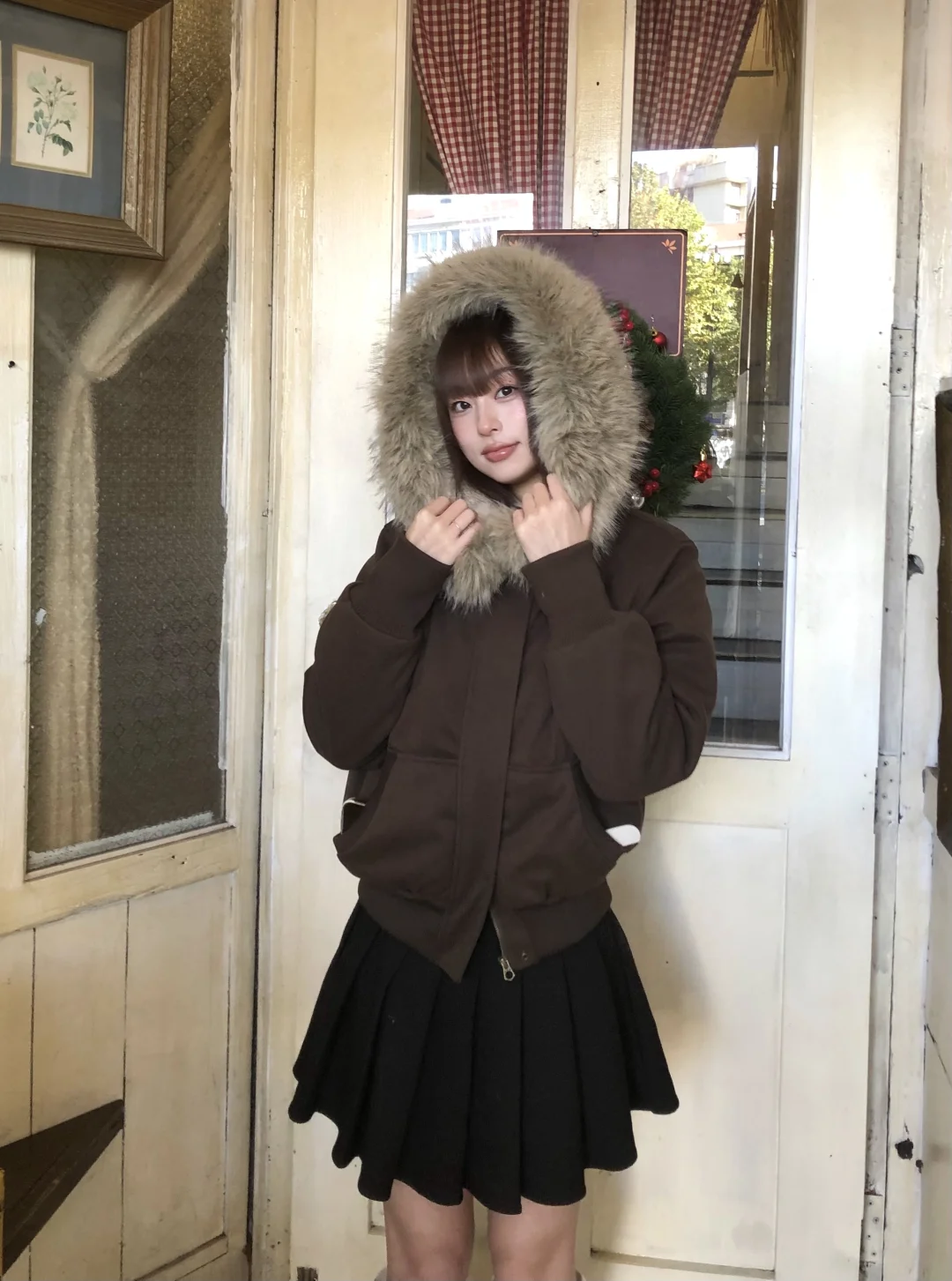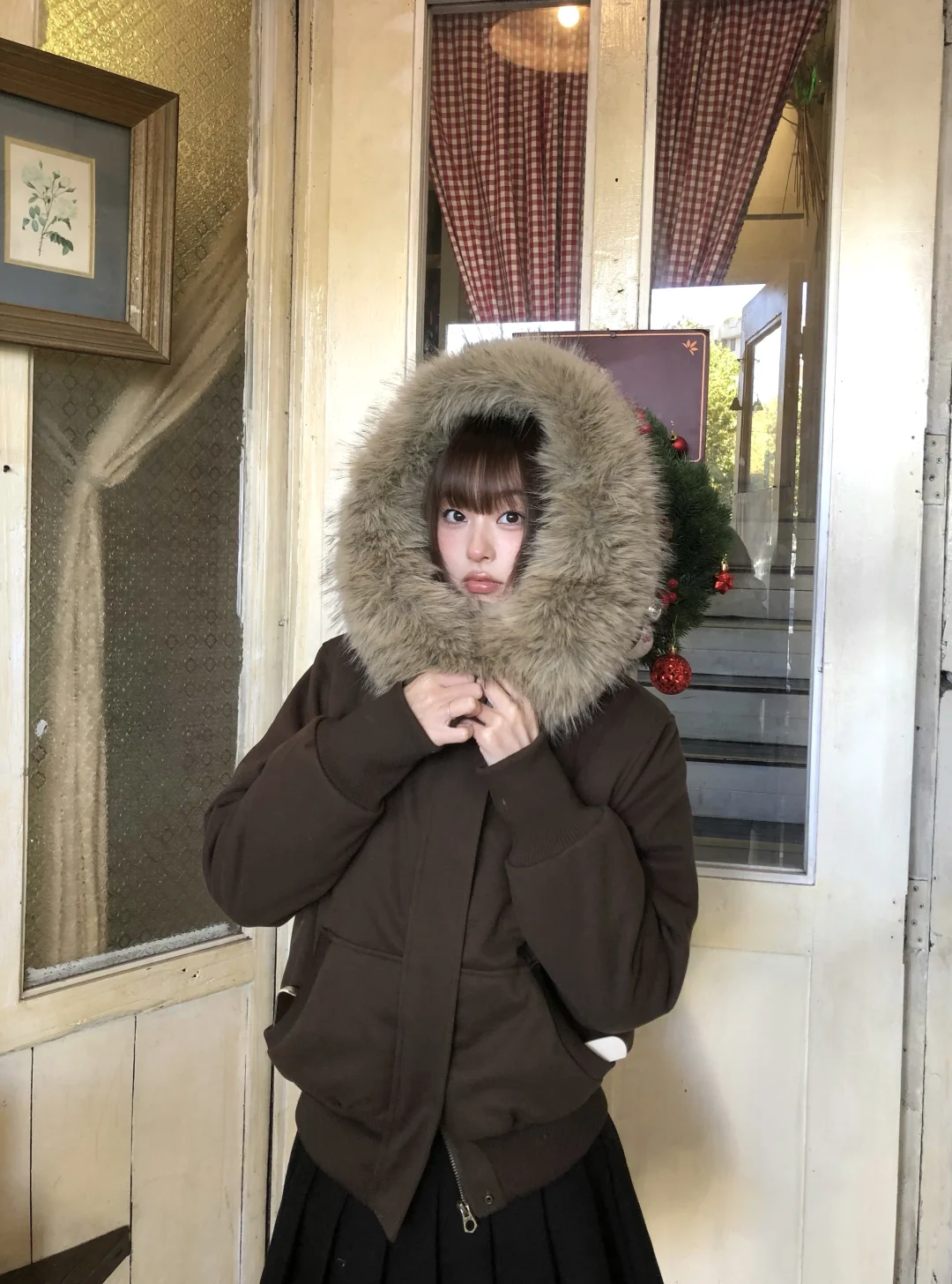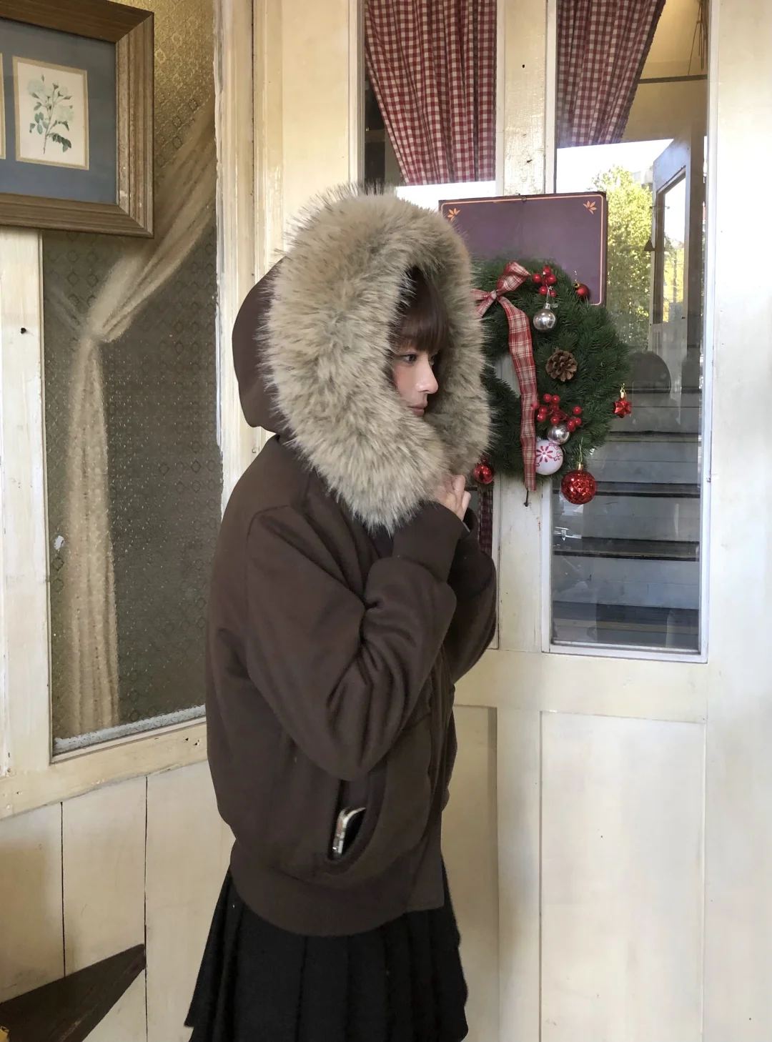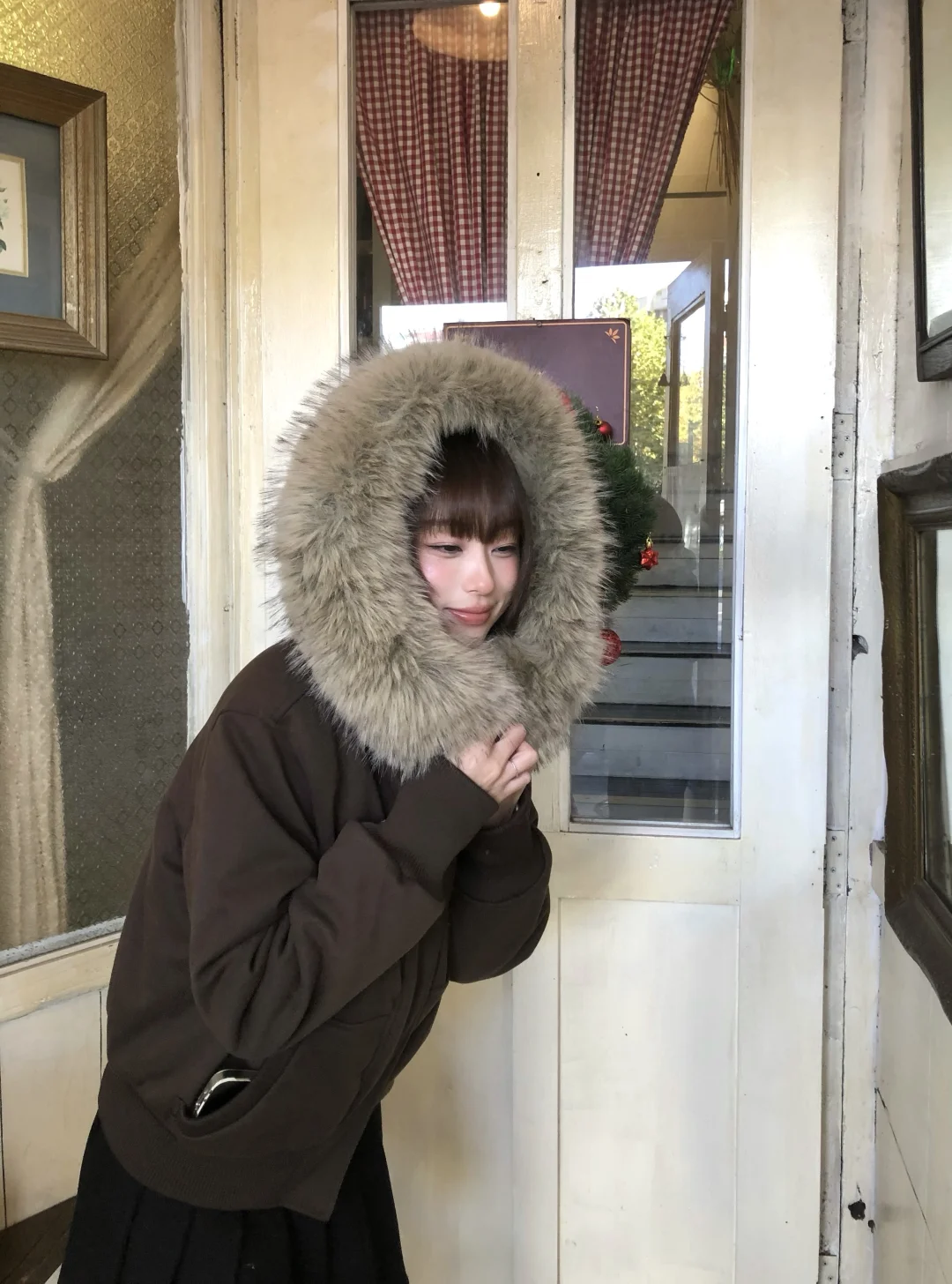 听说你也有一件棕色外套 好喜欢超大毛毛领 温暖 安全 满满的冬日氛围感 上海今天初雪啦 许愿大家都可以幸福哦