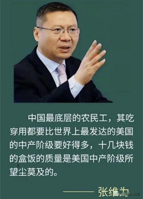 又见维为教授宏论:老美月入4千美元的中产,连下馆子都不敢?住房+税收+医保,占去4千美元80%,那还有钱大口吃肉吃菜?只有中国能做到! 京城徐老师戏曰:老徐倒是可以大口!不知张教授的粉丝们能够大口否? 苍狼没有去过美国,不知那里真实的情况。想必张教授和徐老师都去过? 其实张教授说这话,已经不是第一次。记得很早就说过:我们的农民工都比美国中产吃得好!他们有房有地,每顿三菜一汤,美国中产阶级吃得起吗? 苍狼只是觉得,既然美国如此不堪,为何驻中国大使馆,驻我们各大城市领事馆,经常排队申请赴美者那么多? 又想到不久前,网上热炒美国“斩杀线”,日本人吃不起“蛋炒饭”!美日何时窘困如此?那美韩日是国人留学打工移居前三名选择地,又该怎么讲呢? …………