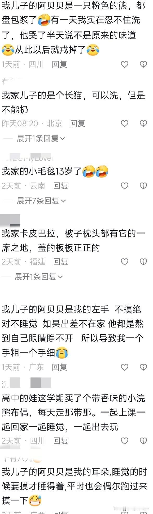 为什么这么多人还在那有说有笑觉得这是一件好搞笑的事情呢? 在我看来,特别依恋一件物品,抱着睡觉,就是孩子没有得到足够多的关爱造成的,孩子没有在你身上得到的东西,他会去别的地方找心理慰藉,不是应该正视自己的教育方式吗?怎么变成了看笑话了? 就像很多女孩小小年纪被小黄毛花言巧语就骗走了一样,其实都是女孩在家里没地位,不是没人管就是挨打挨骂,好不容易有个关心自己的人,她们就觉得别人对她太好了,就跟着走了呀!这能怨女孩子随便吗?家庭幸福被关心呵护长大的女孩就算别人哄骗她,她也有个对比不是?… 有人说我活在自己的世界里无法自拔,啥都能多想,那是他们皮糙肉厚,内心只顾自己,从来不在乎周围人身边人的死活,所以他觉得我矫情我有毛病!我想的多!