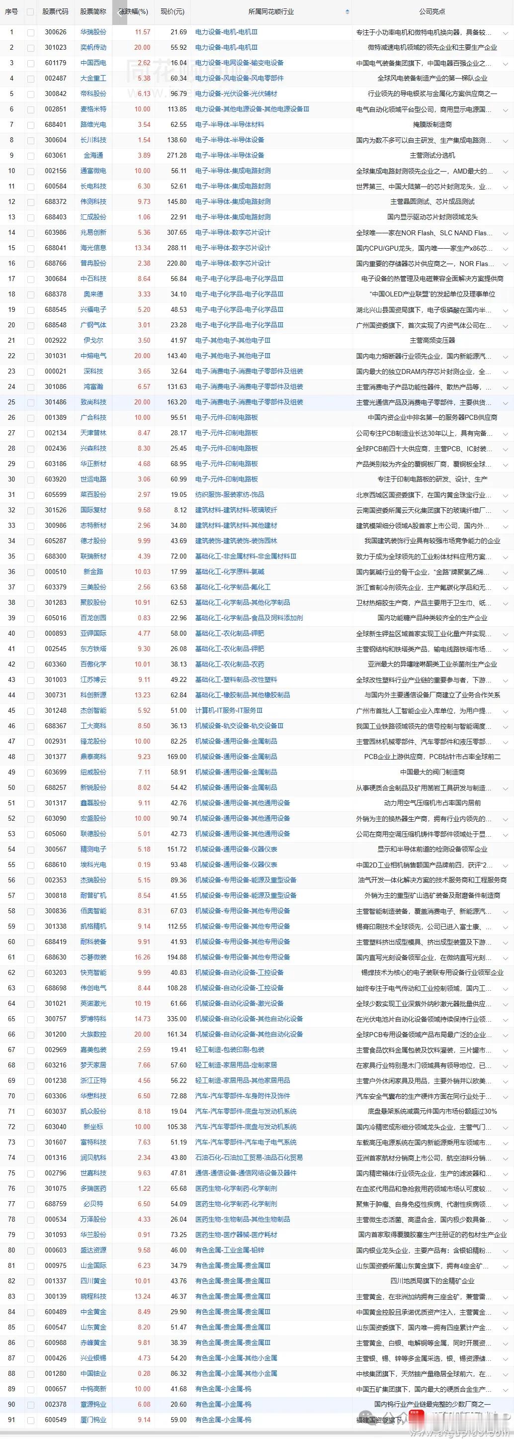 a股 股价新高1/21日收盘价创新高91家(找对标,看行业趋势)【如图】主要集中在半导体、机器人、有色、化工行业