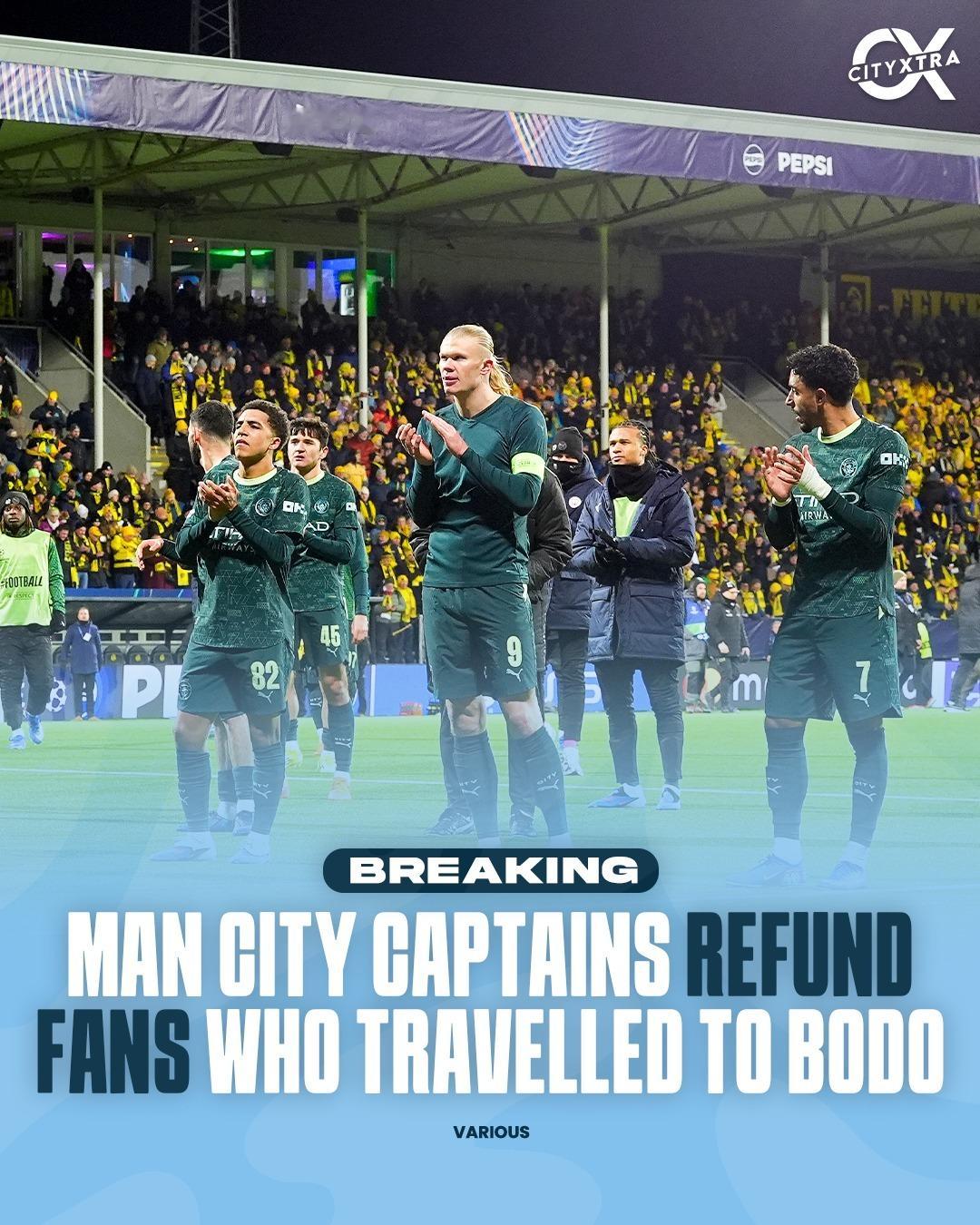 曼城球员自发凑资近1万英镑为远赴博德见证球队1:3失利的374名球迷报销全部球票费用。队长贝尔纳多、鲁本、哈兰德及罗德里联合发表声明:“球迷于我们而言是一切,我们深知球迷跨越万里为球队助威的付出,这份心意我们永远倍感珍惜,他们是世界上最棒的球迷。”球迷们长途跋涉,在冰天雪地中全程为球队加油,但当晚的表现让大家倍感失望。为远赴博德的球迷报销球票是我们能做的最起码的事情。我们已整装待发,将在周六迎战狼队的比赛中全力以赴,下周三在阿提哈德,在挚爱的球迷面前对阵加拉塔萨雷……👏