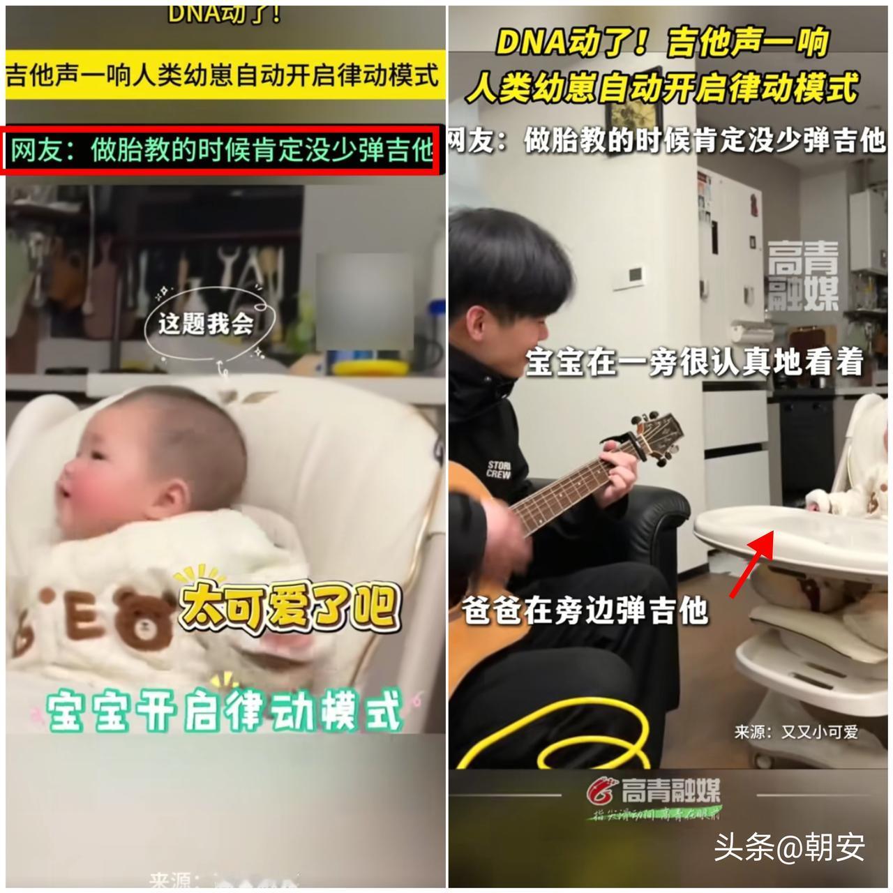 万万没想到! 6个月宝宝听到爸爸弹吉他,瞬间“开演唱会”,手脚齐舞笑到眯眼,这画面也太治愈了! 宝宝本来安安静静坐在婴儿车里,爸爸一拨动琴弦,小家伙立马眼睛发亮,嘴角上扬,小手小脚跟着节奏乱晃,咿咿呀呀跟着“合唱”,全身细胞都在享受音乐。 妈妈说,宝宝在肚子里就常听爸爸弹吉他,出生后哭闹时,一听到琴声就秒安静。 这哪是胎教开花,分明是爱有了回音。 爸爸的吉他声不专业,却成了宝宝最安心的旋律。 最好的陪伴从不是昂贵的玩具,而是把爱藏在日常里,用温柔填满成长的每一刻。 你家宝宝有没有被某个声音瞬间治愈的可爱瞬间? 评论区分享一下~