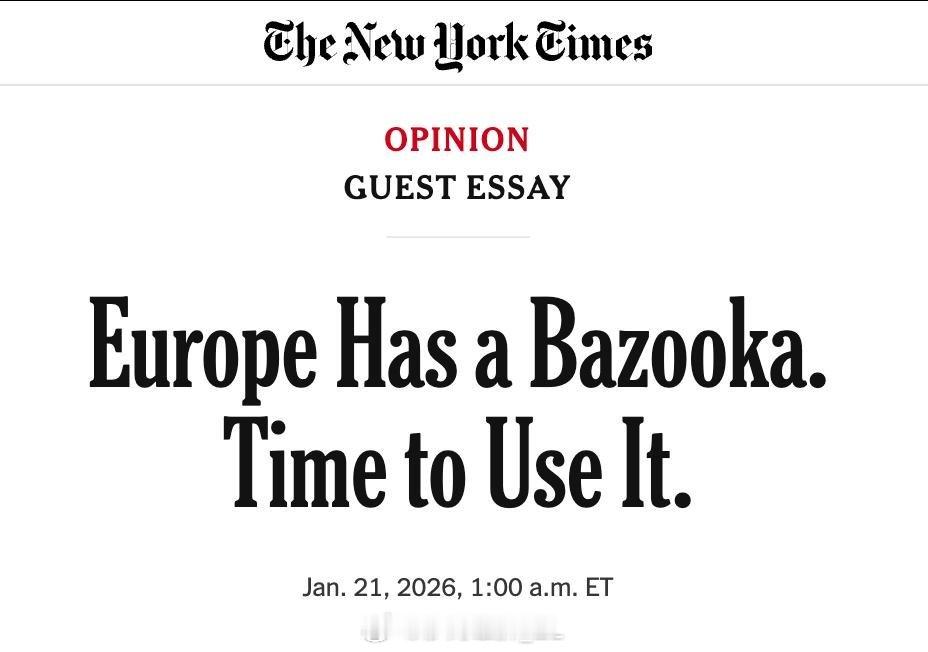 《纽约时报》警告称,特朗普可能以停止支持乌克兰来报复欧盟关于格陵兰岛危机对美国的抗争措施。