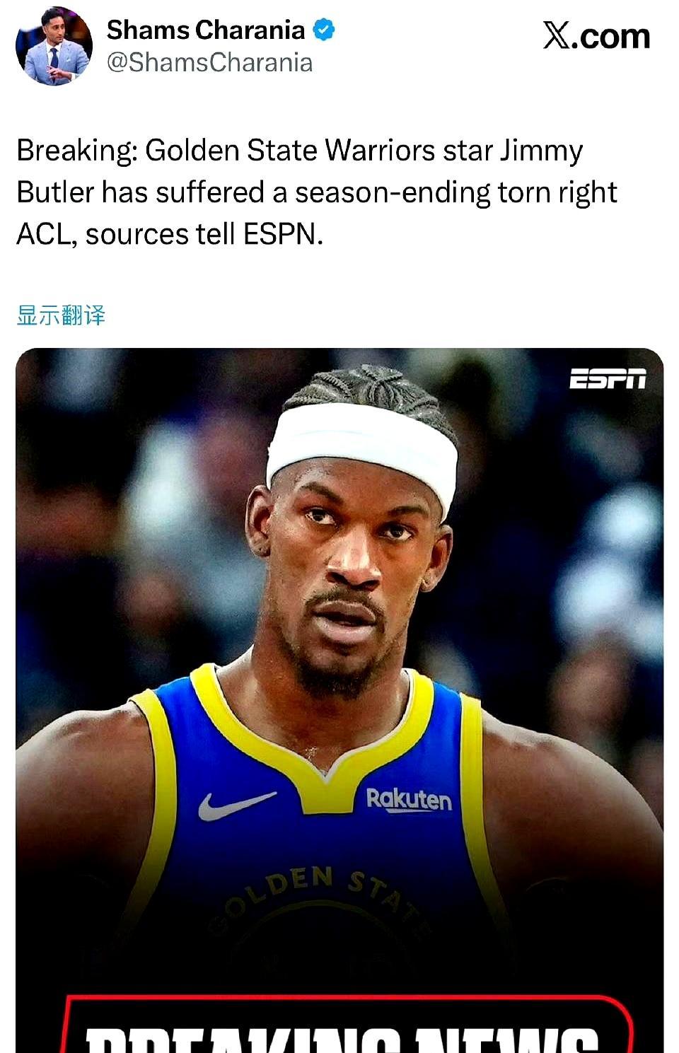 ACL撕裂,巴特勒直接赛季报销 36岁,年薪5400万,勇士刚冲回西部前六,头号帮手说没就没。库里上一场还冲他喊“再坚持五分钟”,转头就看着人被轮椅推走。ACL不是普通扭伤,术后一年打底,爆发力能不能回来没人敢打包票。勇士现在进退两难:交易截止日只剩两周,拿谁去换即战力?留库明加,年轻人合同年心思早飞了;动未来首轮,又怕库里巅峰尾巴被浪费。更现实的是,巴特勒下赛季的5680万是全额保障,联盟没几家敢接。老将最怕大伤,一年躺完,状态、身价、心气一起跳水。勇士的争冠窗口,被这一下撞得咔咔作响。
