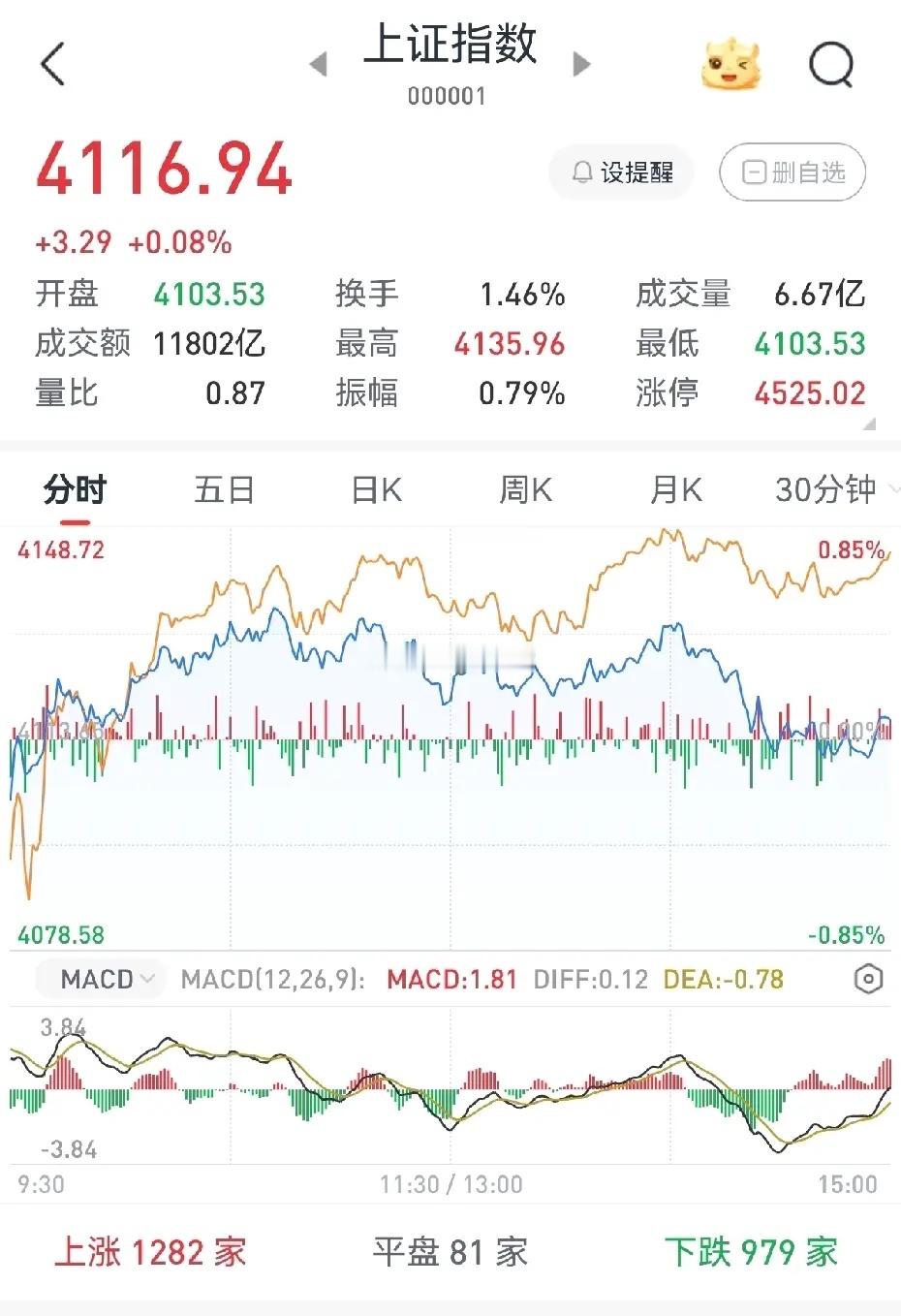 该跌不跌,明日大盘指数能否如期上扬?今日大盘指数在周边股市普遍重挫的环境下,走出了低开高走的行情。虽说盘中有冲高回落的状况出现,但收盘指数依旧顽强翻红,日K线呈现为一根带上影线的光脚小阳线。鉴于今日大盘指数走出了特立独行的走势,那么明日的大盘是否真如一些人所言“该跌不跌,理应看涨”,走出一波较为可观的上涨行情呢?我的看法是可能性较小。理由主要有以下两点:一、从今日分时图来看,每当大盘指数站上4130点时,盘中便会涌现大量抛压盘,恰似一只无形的手,牵制着指数上行,这种情况昨日也曾出现。由此我判断,4140点极有可能是大盘近期横盘震荡的上沿位置。我预计明日大盘指数即便反弹,也难以突破这一点位。二、从成交量分析,今日两市大盘共计成交2.62万亿,较昨日大幅缩减。我觉得今日大盘的成交量仍处于回归正常量能的进程中。唯有两市大盘日成交量降至2.5万以下,大盘指数才会走出让投资者安心的慢牛与长牛行情。我预估明日大盘两市的成交量还会减少,所以缺乏量能支撑的大盘,很难走出大家期望的上涨行情。综上,我认为明日大盘仍会在4080点至4140点这一区间内震荡。以上为个人观点,仅供参考。
