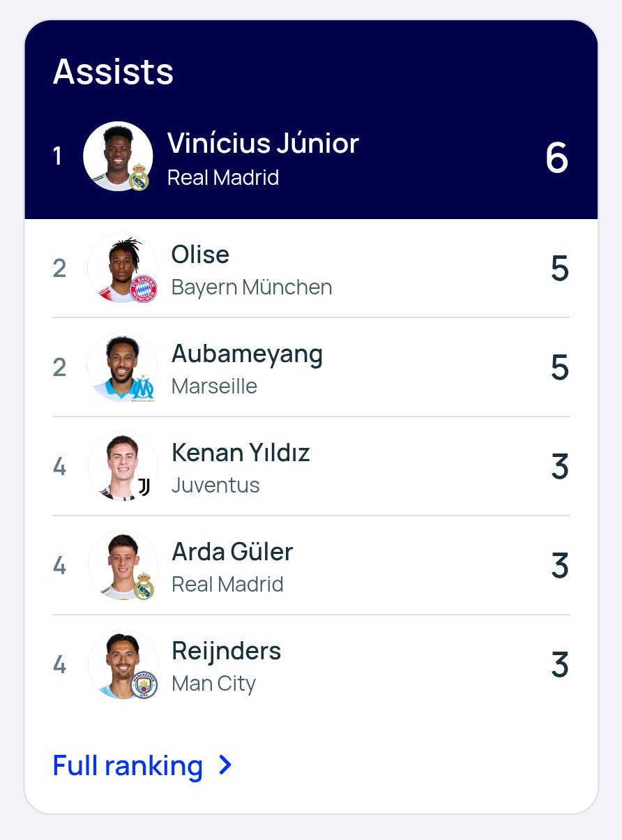 本赛季欧冠射手榜&助攻榜!⚽️🎯欧冠联赛皇马6比1摩纳哥halamadrid