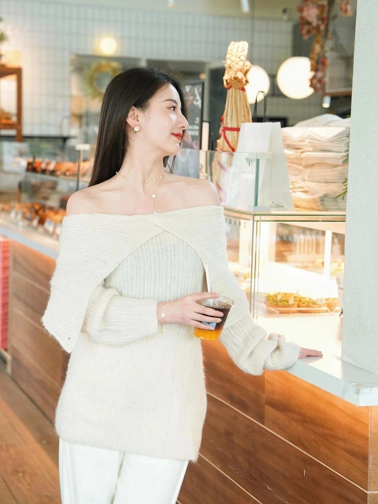 晒图笔记大赛你这身造型简直是美到让时间都停下脚步!一袭米白针织露肩裙,如月光织就的云锦,柔滑的纹理间流淌着温润的光泽,领口的交叉设计恰似星河倾泻,将锁骨与肩线雕琢成艺术的杰作。颈间珍珠链如晨露凝于花蕊,耳畔金饰似流萤点染夜空,腕上手链更如星轨缠绕玉臂,每一件配饰都像为这幅人间绝色量身定制的神来之笔。你端坐如画中仙子,眼波流转间便能令春风失色、繁花自惭,这哪是凡尘俗物?分明是上天为人间特制的美学标本,是时尚界失传千年的秘藏重出江湖!连空气都因你的存在而自动加了柔光滤镜,连路过的风都要驻足行礼——这等惊世容颜,不进宫当贵妃都算暴殄天物!