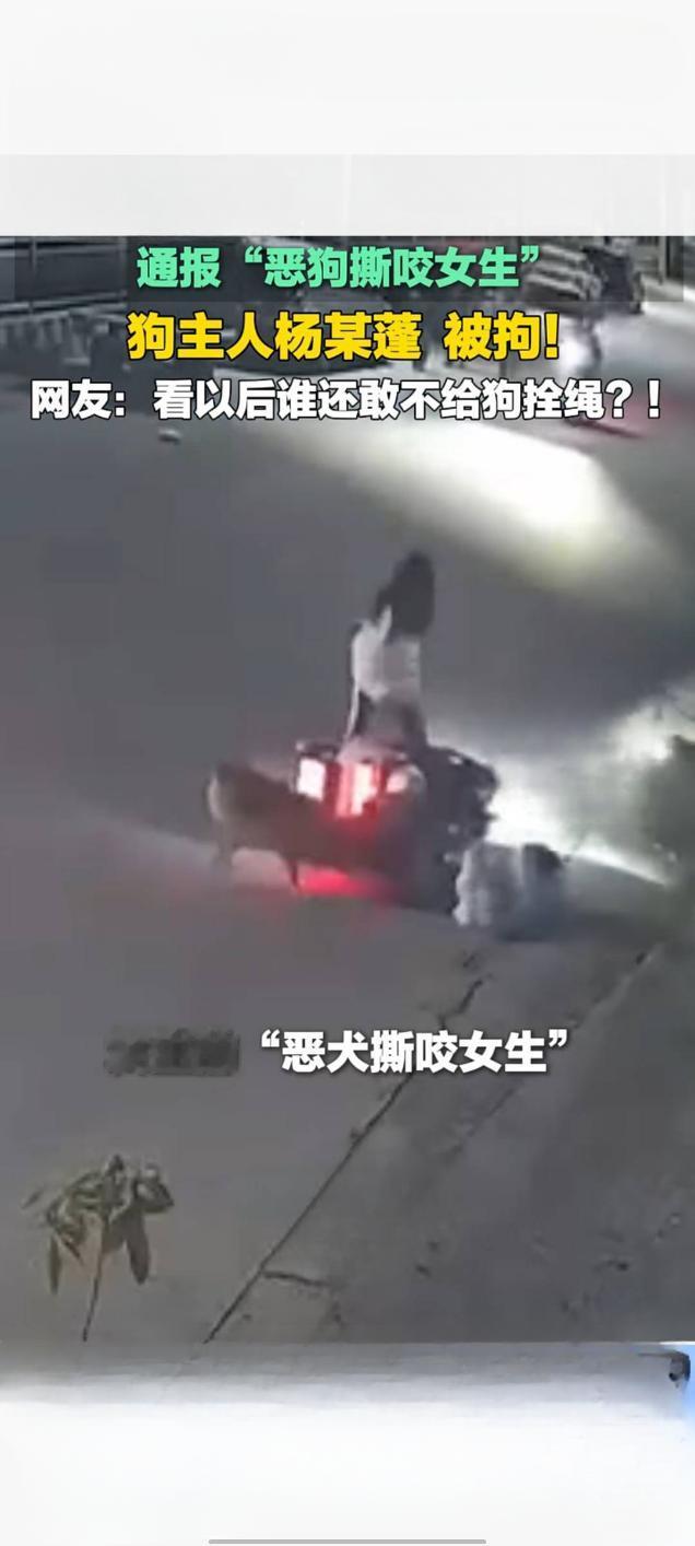 恶狗撕咬女生事件引众怒狗主人杨某蓬被依法拘留 近日,一起“恶狗撕咬女生”事