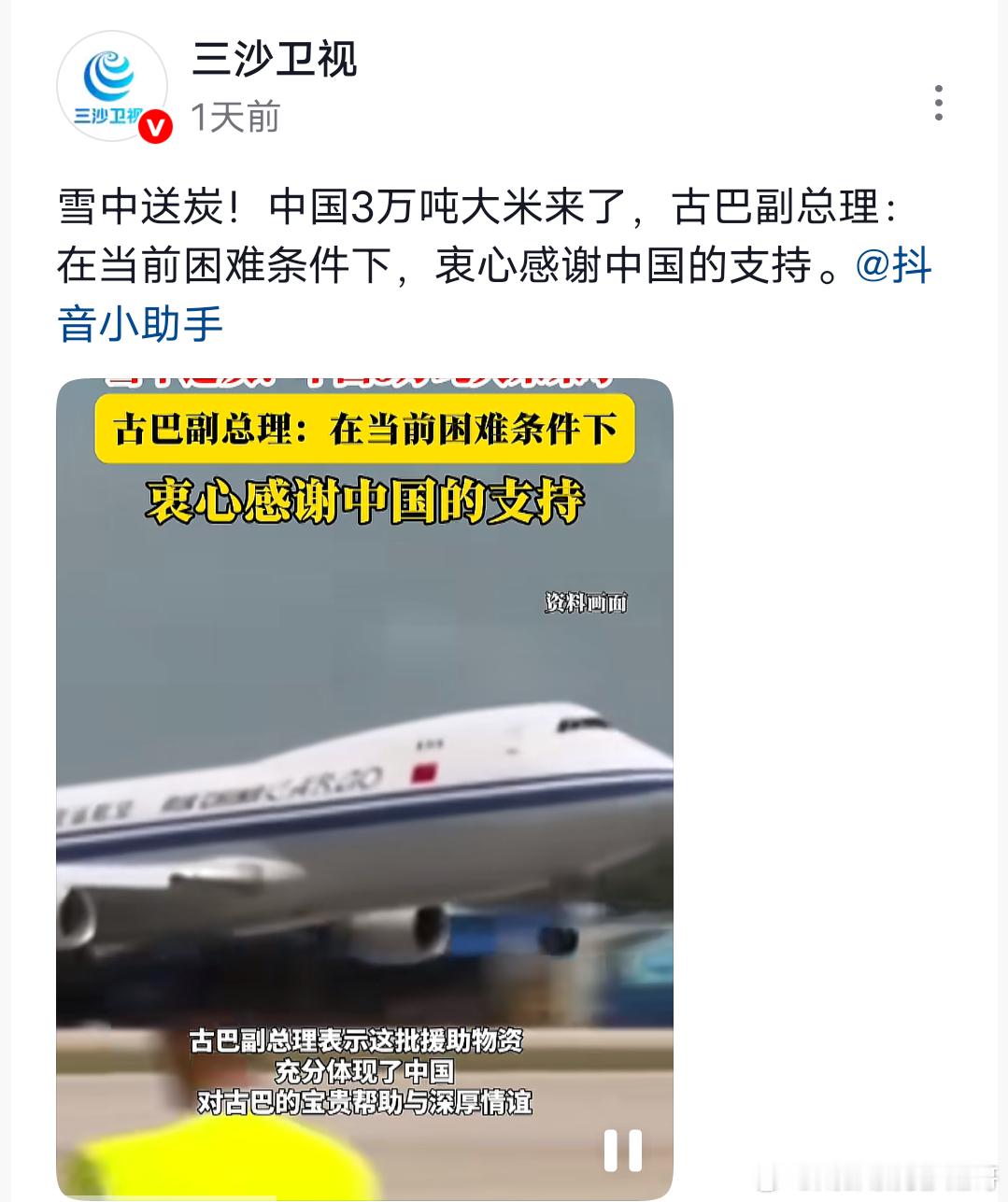 援助古巴3万吨大米,雪中送炭!