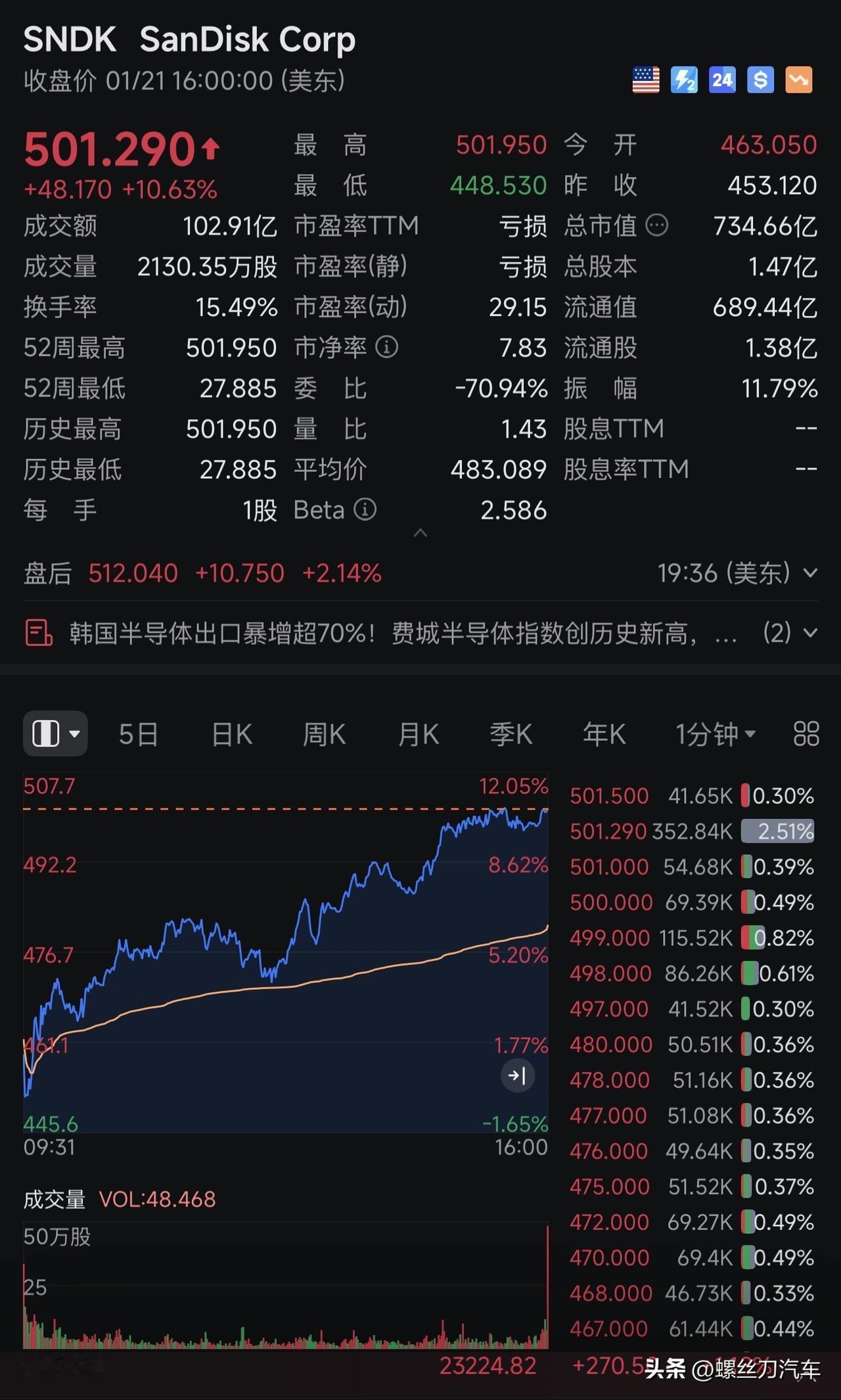 闪迪大涨10%! 在这么涨下去,消费级存储恐怕也会用不起了…
