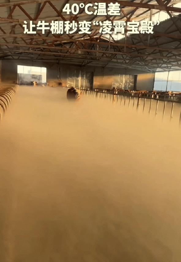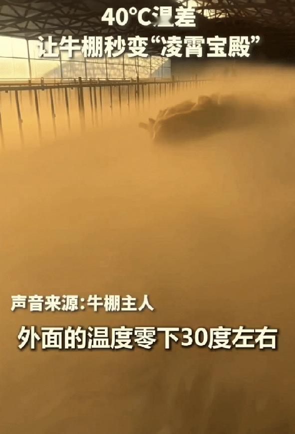 “没想到上人民日报了!”内蒙古,女子清早起来去牛棚喂牛,不料一推开门直接傻眼了,棚子里竟白茫茫一片,几十头牛在雾里忽隐忽现,像玉皇大帝的凌霄宝殿。 在内蒙古的冬日清晨,天刚蒙蒙亮,一位养牛大姐就跟往常一样,裹紧衣服往牛棚走,想着早点把草料添上,让几十头牛吃个饱,可谁能想到,手一推牛棚门,她当场就愣在原地,整个人都傻眼了。 眼前哪儿还是熟悉的牛棚,里头白茫茫一片全是浓雾,浓得伸手都快看不清五指。 几十头牛散在雾里,只能瞧见毛茸茸的脑袋和晃动的牛角,身子全被雾气裹得严严实实,走起来脚下还飘着淡淡的白气,那模样活像玉皇大帝的凌霄宝殿,这群牛倒成了腾云驾雾的“仙牛”。 大姐又惊又喜,赶紧掏出手机拍下来,嘴里还忍不住念叨,这一辈子喂牛,从没见过这阵仗。 其实这是大自然的小魔术,主要是内蒙古冬日的温差,事发时室外气温都快降到零下30度了,寒风刮得能冻掉下巴,大姐为了给牛保暖,把牛棚封得严严实实,一点透风的地方都没有。 几十头牛挤在棚里,本身就是一个个“活暖炉”,不停散发体热,再加上呼吸时呼出的热气,棚内温度能维持在五六度,里外温差足足有三十多度。 棚里密闭久了,空气里积满了水汽,就等一个触发点,大姐推门的瞬间,外头的极冷空气猛地灌进去,暖湿空气一下子被“冻住”,水汽迅速凝结成小水珠,聚在一起就成了这浓得化不开的雾。 大姐说自己也没料到这段视频能火,只是觉得稀罕,想记录下这特别的瞬间。 网友们的评论更是有意思,有人调侃“这哪是牛棚,分明是牛魔王的水晶宫”,还有人开玩笑“牛都成仙了,挤出来的奶是不是得叫仙奶”,南方的网友更是羡慕,说这种零下三十度的浪漫,真是开眼界了。 其实这事儿之所以让人觉得暖心,不光是画面神奇,更在于它藏着普通人生活里的小惊喜。 大姐日复一日喂牛、清棚,日子平淡又琐碎,可一个偶然的清晨,一场自然形成的雾,就把枯燥的日常变成了难忘的风景。
