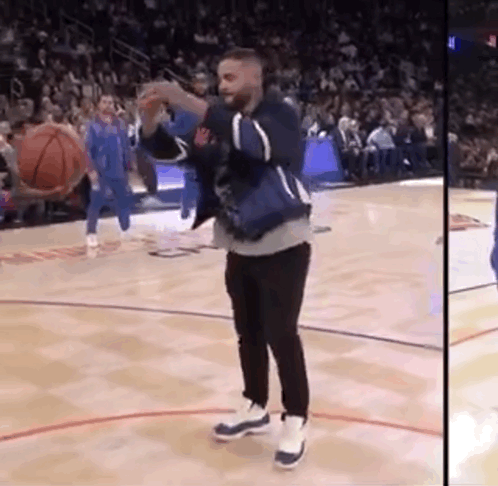 卧龙凤雏!这俩球迷是来搞笑的吧,好歹也是半职业球迷呀,一个扣篮趴在地板上,一个连续篮下投不进,他们应该是故意的。