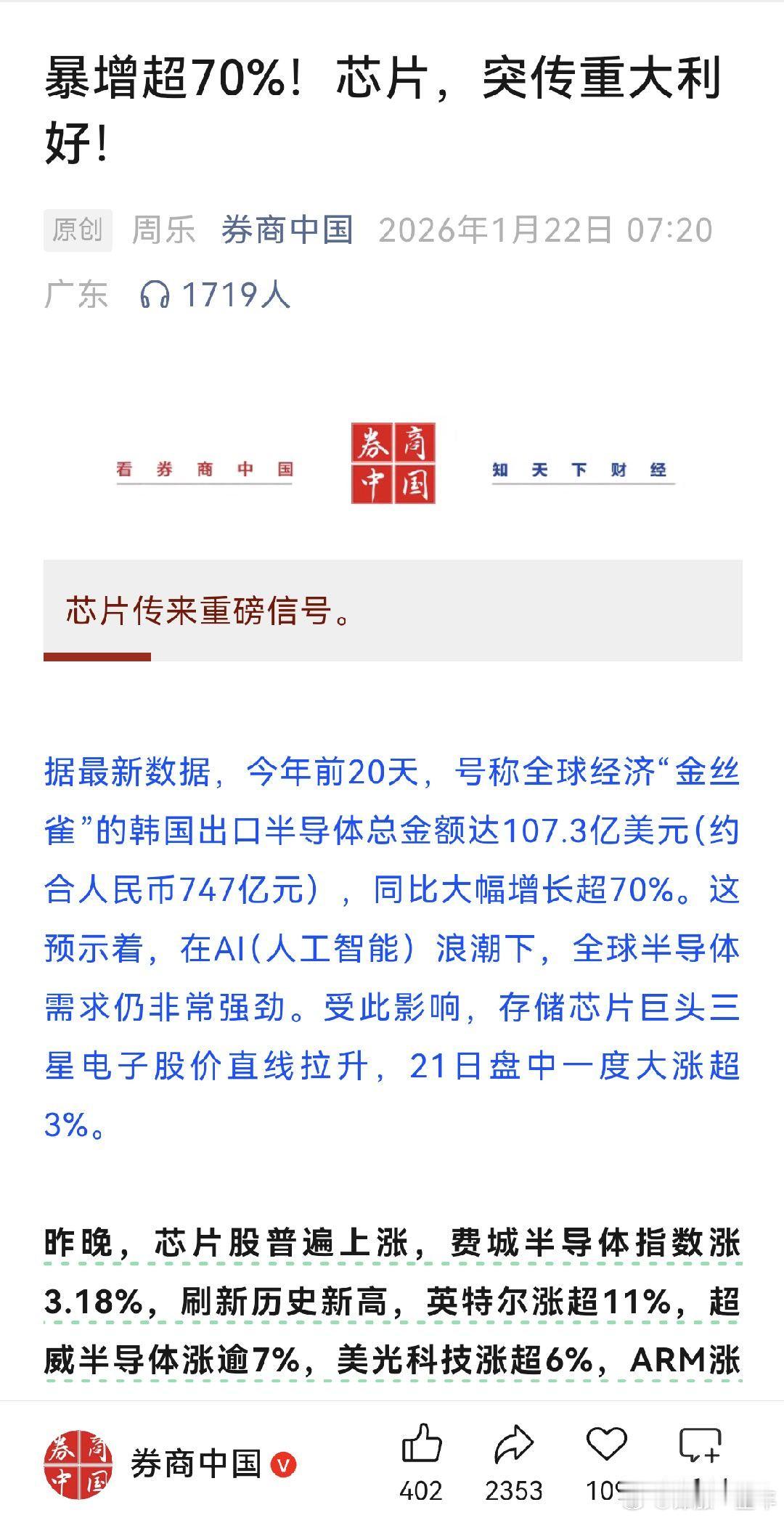 A股 前有台积电业绩逆天,现有韩国半导体出口金额大增超70%!科技行业yyds。