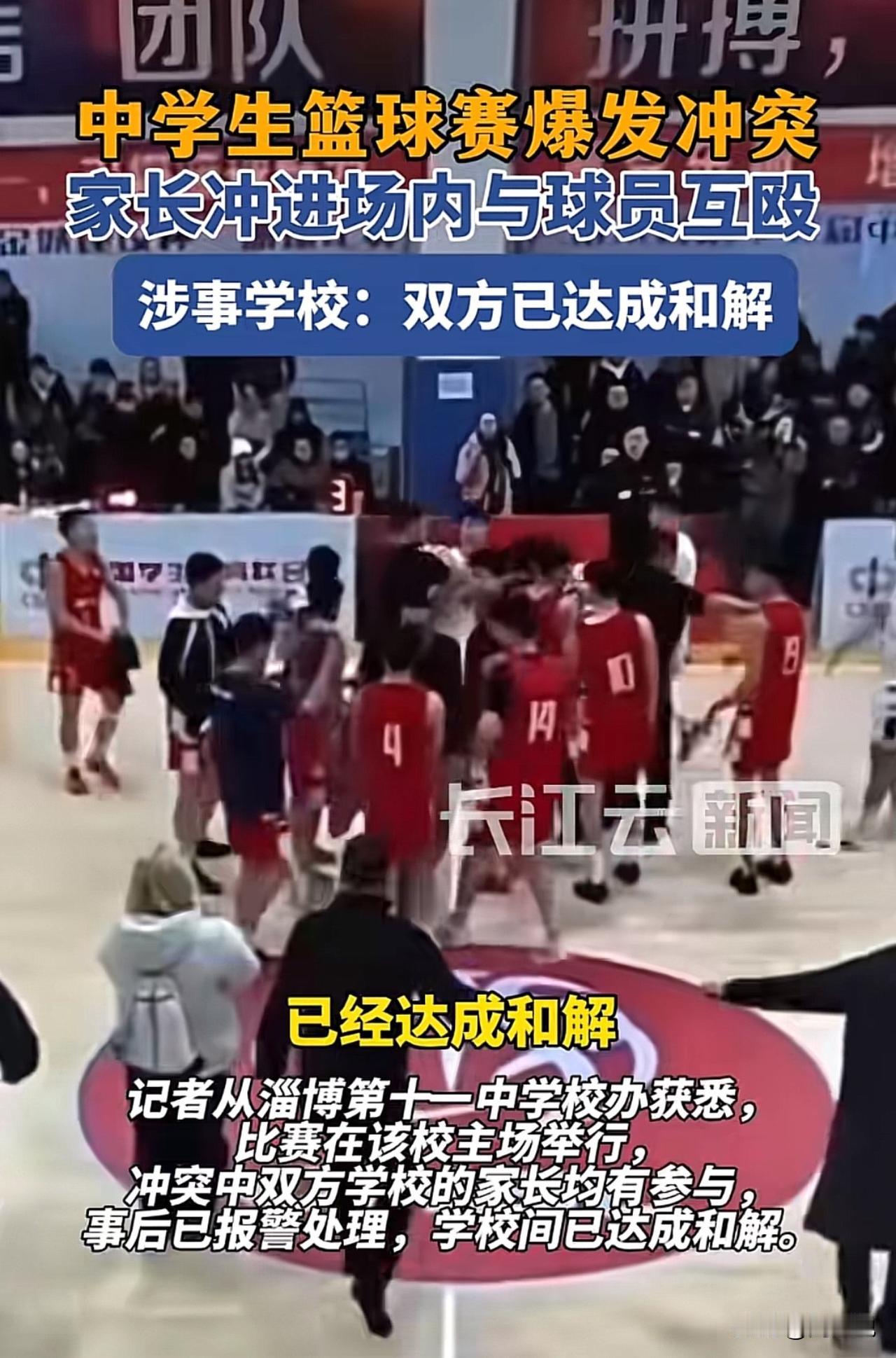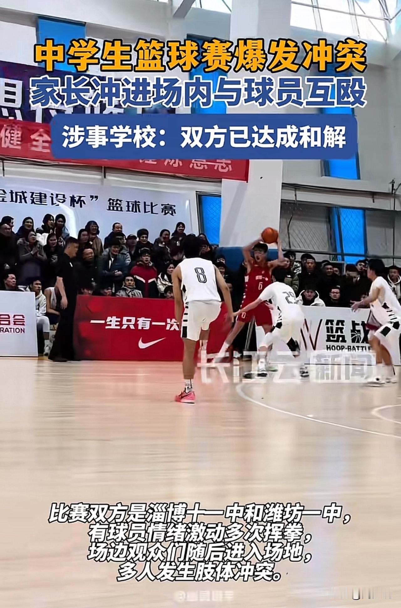 “太离谱了!”近日,淄博十一中与潍坊一中的赛后,球员因情绪激动挥拳相向,场边家长也加入混战,多人发生肢体冲突,直接把篮球赛变全武行,引发全网热议。 不少网友纷纷怒斥:““孩子不懂事,家长也跟着糊涂,这哪是看比赛,简直是添乱!” 还有网友则表示:“赛场有规则,输赢乃常事,这教给孩子什么?” 针对此情况,涉事学校回应,双方家长均参与其中,已报警且学校达成和解,警方正进一步调查。 在周少看来,这场冲突不仅是赛场秩序的破坏,更是一堂失败的教育课。青少年打球本是学拼搏、懂规则、会包容,可球员的冲动、家长的“护犊子”,传递的却是以暴制暴的错误观念。 家长是孩子第一任老师,遇事不理智、不守规矩,只会扭曲孩子的价值观。赛事方的监管缺位也难辞其咎,早介入才能防微杜渐。和解只是暂时的,家校更该反思,别让竞技赛场,弄丢了体育精神和育人初心。#寻美三湘# #长沙新朋友#
