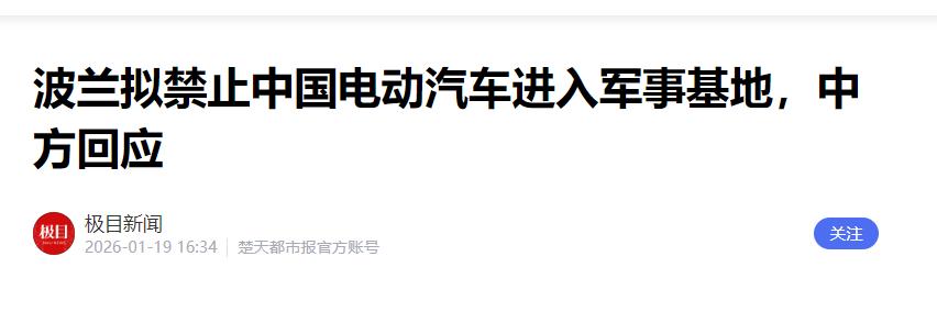 刚送走美国对中国电动车的围堵,又一个北约国家跳出来搞事情!波兰军队突然抛出重磅禁令,直接要把中国电动车挡在军事基地门外,理由居然是“数据安全威胁”?这波操作到底是真防风险,还是故意碰瓷?中方的反击有多硬气,一句话就把波兰的伪装打回原形!   这就有点意思了。一部能把你生活点滴同步到加州服务器的智能手机,可以大摇大摆地带进波兰军事禁区。可一辆中国品牌的电动车,只是停在基地大门外,就被贴上了“危险”的标签。   这背后的逻辑,跟技术没多大关系,全是偏见。我们得先弄明白一个基本事实,现在但凡是辆智能汽车,都在收集数据。   不管是美国的特斯拉,德国的大众,还是中国的比亚迪,车上的摄像头、雷达和GPS,分分秒秒都在工作。没有这些数据,所谓的辅助驾驶、智能导航根本无从谈起。   可波兰军方的审查报告,偏偏不谈这个技术常识,反而玩起了文字游戏。翻遍报告,全是“潜在”、“可能”这种模棱两可的词,却找不到任何一条真凭实据,证明哪辆中国汽车泄露过数据。   这么一来,问题的性质就变了。焦点不再是技术,转换成了汽车的“国籍”。数据传到美国,就等于安全。数据和中国沾边,就默认是危险。这显然不是技术讨论了,这是赤裸裸地选边站队。   波兰为什么这么做?答案很简单,这是在安全问题上向华盛顿表忠心。它想通过排挤中国的高科技产品,证明自己是可靠的盟友。   但这份“投名状”的代价,波兰自己正在默默承受。一个很尴尬的现实是,波兰自己的电动汽车产业几乎一片空白。因为缺电池这样的核心技术,本土品牌的量产计划一拖再拖。   所以我们看到一个很拧巴的场面,边高喊着“安全”,抵制中国整车。又极度依赖中国的技术和供应链。   它还跟着欧盟一起对中国电动车加征关税,结果呢?直接把投资机会送给了邻居。中国的零跑汽车,就把原本可能落在波兰的欧洲工厂,建到了西班牙。   最后吃亏的,还是波兰的就业和波兰的消费者。   要知道,中国电动车靠着实打实的性价比,已经在波兰拿下了超过三分之一的市场。军方这道禁令虽然没直接捅到民用市场,但寒蝉效应已经出现。   一些企业和地方政府在采购时,已经开始犯嘀咕。   面对这种捕风捉影的指控,中国的回应很直接,也很冷静。外交部发言人讲得很明白,不要泛化国家安全概念。   这话背后的意思很清楚,要谈风险,可以,但请拿出事实和证据来,别搞有罪推定。   否则今天你可以用“国家安全”打压我的汽车,明天别人也能用同样的理由卡你的脖子。这套逻辑,最后会搅乱所有正常的贸易秩序。   事实上,中国车企为了能堂堂正正地进入欧洲市场,在数据合规上花的力气比谁都大。比亚迪直接在欧洲建了数据中心,保证所有用户数据都留在欧盟境内。   小鹏汽车更进一步,甚至把部分源代码开放给第三方做安全审查。中国企业在努力地遵守和适应规则,反倒是有些西方政客,总想把规则变成自家的棍子,看谁不顺眼就打一下。   波兰这档子事,看着不大,但它体现得是整个欧洲在新能源时代的一种普遍焦虑。他们发现自己在燃油车时代的传统优势快要保不住的时候,用非市场的手段来干预,就成了一个很有吸引力的选项。   但是,真正的风险,是自己技术研发的停滞和产业转型的缓慢。欧洲的汽车巨头们在电池、电机这些核心领域,仍然严重依赖中国供应链的时候,任何禁令都显得有点外强中干。 信息来源:《波兰拟禁止中国电动汽车进入军事基地,中方回应》,极目新闻,2026年1月19日。