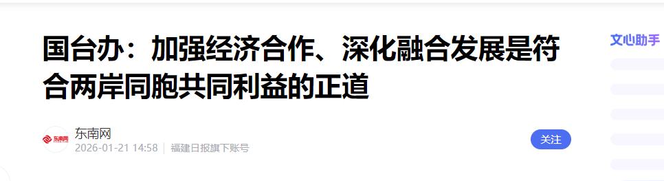 中国大陆国台办正式宣布,   1月21日,中国大陆国台办正式宣布:即使在台湾民进党当局“处心积虑阻挠禁限”下,2025年两岸人员往来比2024年大幅增长104.45万人次,达544.95万人次,同比增长23.6%!   国台办发言人彭庆恩表示:“真诚欢迎越来越多的台湾同胞来大陆走一走,看一看,欣赏祖国大陆壮美河山,感受大陆经济社会蓬勃发展的万千气象”。   一边是欢迎,另一边却在不断设卡。民进党当局从2020年起,先是以防疫为名,禁止了大陆居民赴台,随即又喊停了台湾旅行社的大陆团队游业务,这道“禁团令”到现在还没松口。   不仅如此,他们还在不断加码。今年6月,甚至把赴大陆的旅游警示升为“橙色”,对于业界恢复两岸客运直航航点的呼声置若罔闻,连平潭到台湾的包船申请也压着不批。这些做法,让两岸的正常交流几乎停滞。   后果很直接,最先感受到寒意的就是台湾的旅游业。过去,大陆游客是台湾观光业的支柱,为岛内带去了实实在在的收入和就业机会。如今政策一变,许多相关产业的日子变得很难过。   但政治上的盘算,终究抵不过普通人实实在在的生活需求。是什么促使一个人下决心买机票、办签注?往往是最具体的生活本身。   孩子要到大陆念书,关系到前途。家里老人身体不适,必须回去探望。工厂接了新订单,得亲自盯着才能确保一家人的生计。这些理由,每一个都具体而真实,比任何官方文件都更有说服力。   这种源自生活的驱动力,已经渗透在台湾的各个角落。金门人早上去厦门买份早餐,跟我们去趟楼下便利店没什么两样。   屏东的渔民和舟山的同行在系统里对接订单,早已是工作常态。高雄的设计师想找灵感,第一个念头可能就是去苏州的园林待一天。   正因为如此,民进党当局的种种限制,在地方层面常常难以执行。因为县市长们首先要对自己管辖的民众和经济负责。   你看,台北和上海的“双城论坛”,顶着各种压力,硬是办了十五届。南投和杭州也办起了“两湖论坛”。   更不用说金门、马祖,与对岸早已形成了事实上的“一日生活圈”。   台东县长为什么要冒着被绿营攻击的风险,亲自带队来大陆卖凤梨、拉游客?因为他身后,是成千上万指望订单的果农,和上百家等着客人的民宿老板。帮乡亲们把日子过好,比什么都重要。   这样的人来人往,还在悄悄地改变着人们了解对岸的方式。   过去,很多台湾人认识大陆,靠的是新闻报道和网络信息。现在,越来越多的人选择亲眼来看。在预计的五百多万人次里,将有超过三十万是第一次踏上这片土地的“首来族”。   他们来了就会发现,很多事情和听到的不一样。亲身坐上时速350公里的高铁,才能理解大陆的基础建设到了什么程度。   亲自去拜访客户、考察工厂,才能体会这里的市场规模和竞争压力。和大陆的同学、同事一起完成一个项目,才会发现彼此的思维方式能激发出意想不到的合作效果。   这些第一手的感受,不会只停留在手机相册里。它们会在饭桌上、在LINE的聊天群里,在与亲友的闲聊中,慢慢传递回台湾。这种来自熟人的分享,远比任何媒体报道都来得真实可信。   所以,2025年这个544.95万,并非统计数字。它是由无数次探亲的奔波、求学的启程和为生计打拼的脚步构成的真实轨迹。   政治或许能在地图上划线,但人心里的情感和对美好生活的追求,会自然而然地走出自己的路。   信息来源:《国台办:加强经济合作、深化融合发展是符合两岸同胞共同利益的正道》,东南网,2026年1月21日。