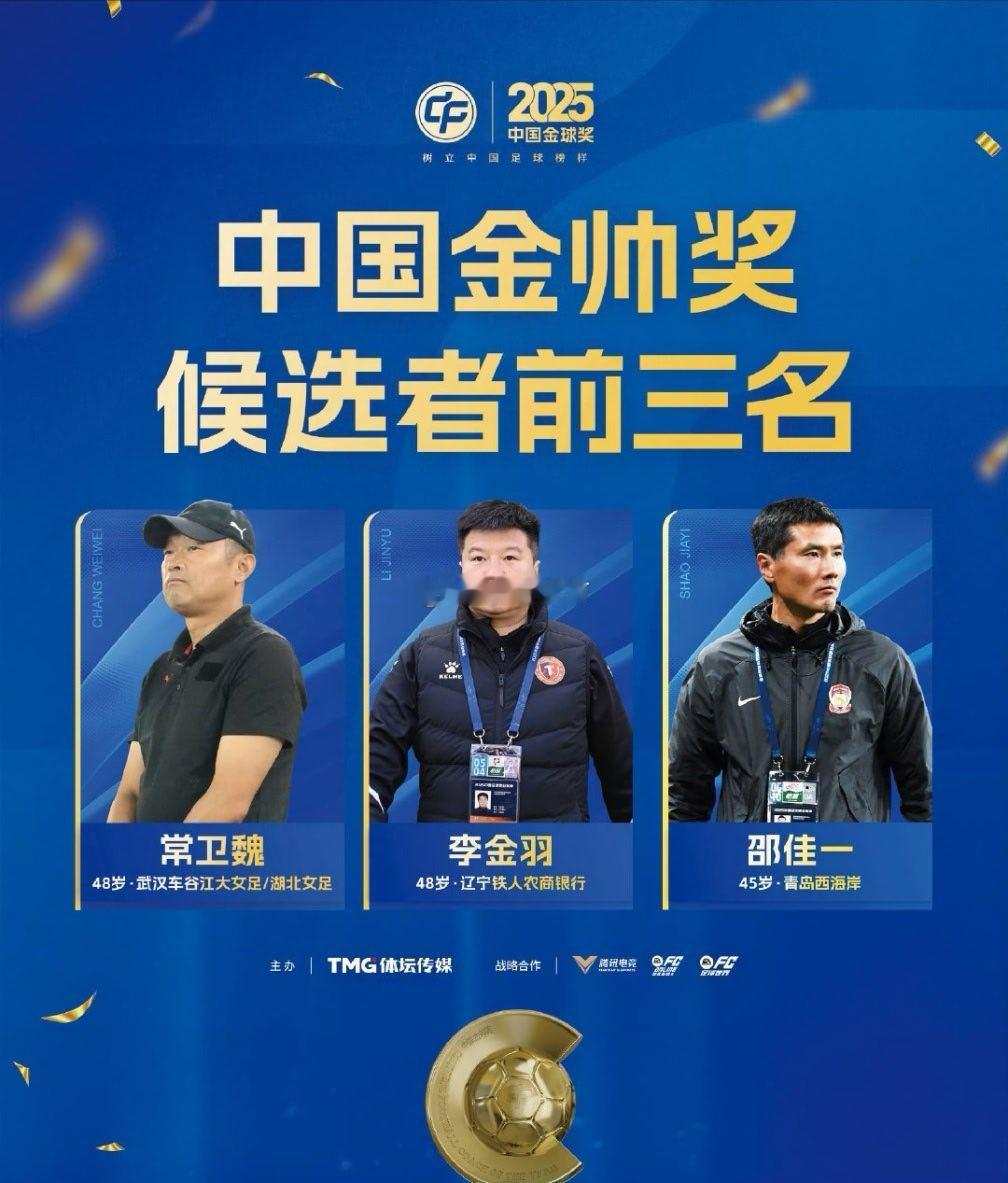 2025中国金球奖候选前三公布 主帅李金羽,金球奖吴曦
