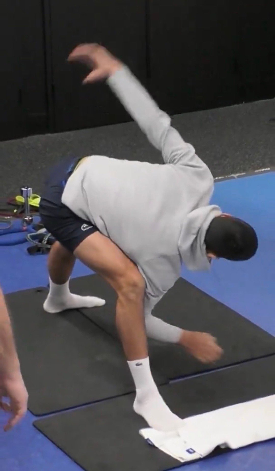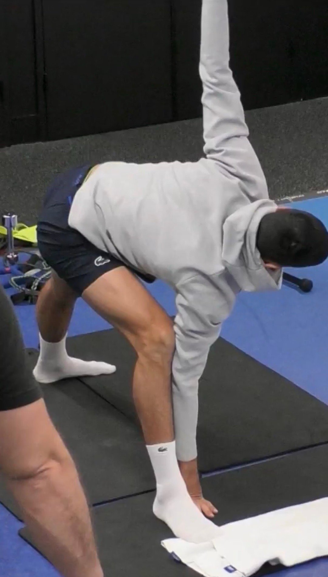 看德约科维奇为第二轮比赛的热身拉伸,这个柔韧性!好强!澳网2026