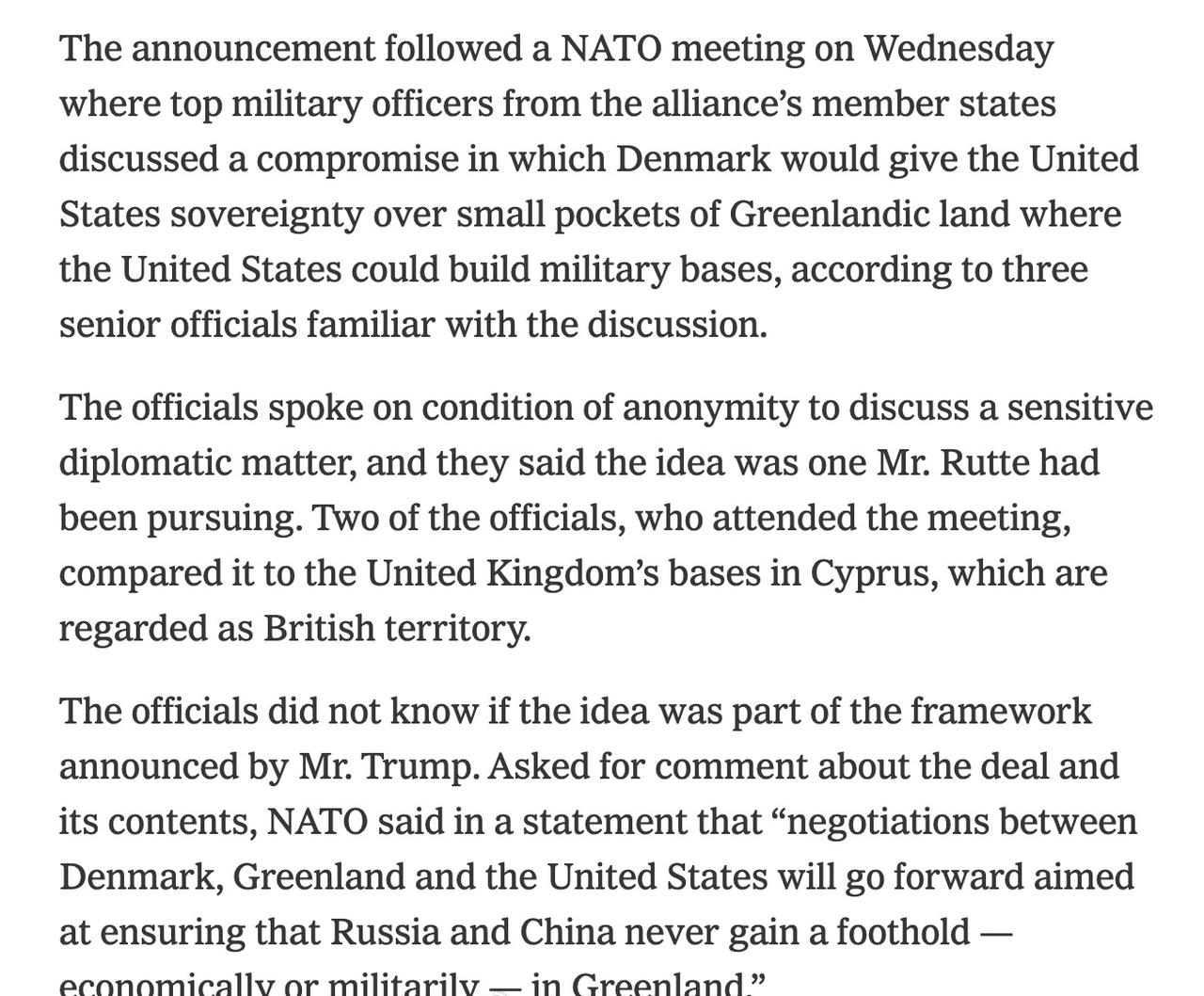 近日匿名北约高级官员称丹麦可能让出格陵兰小块土地,供美国修建军事基地。这一折中方案于近期一场北约会议后被披露,据与会高级军事官员称,其模式类似于英国在塞浦路斯拥有主权基地区。 该方案的核心内容是,丹麦将把格陵兰岛上部分零星土地的主权移交给美国。在这些区域内,美国可以建立并运营自己的军事基地,其法律地位将类比为“美国领土”。推动这一构想的主要人物据称是北约秘书长马克·吕特。 目前,各方对这一方案的细节都保持沉默。特朗普总统未立即披露任何框架协议的具体内容。当在达沃斯被问及“所有权”问题时,他也没有明确表示美国将拥有格陵兰。同样,北约秘书长吕特和丹麦领导层也未公布详情。丹麦首相办公室则未对评论请求作出回应。 北约在一份官方声明中阐述了其总体目标,即通过丹麦、格陵兰与美国之间的持续谈判,确保“俄罗斯和中国永远无法在格陵兰获得经济或军事立足点”。这被视为该折中方案的战略背景。 方案背后有着深刻的战略动因。格陵兰岛对于北美防空至关重要,是防御导弹袭击的关键前哨。同时,岛上蕴藏的丰富稀土和油气资源,对美国产业与国家安全具有战略意义。美国对格陵兰的兴趣历史悠久,此次可视为其长期战略的延续。 然而,各方立场存在明显矛盾。丹麦政府此前坚决拒绝出售格陵兰整体主权,但已立法为美军基地提供可能性,显示出妥协空间。格陵兰自治政府则在“合作”与“被控制”之间寻求平衡。美国方面则持续以关税等作为施压工具,其高级官员甚至曾质疑丹麦对格陵兰主权的合法性,引发争议。 北约内部也因此事出现裂痕。尽管德国、法国等欧洲盟友象征性地派兵参加在格陵兰的军演以示支持,但规模极小,且在压力下迅速撤回,暴露了欧洲在面对美国压力时的战略自主短板。 如果此方案得以实施,可能带来多重影响。最直接的风险是加速北极地区的军事化,可能引发俄罗斯的强硬反制,加剧紧张局势。从国际法角度看,单方面改变领土现状的做法也面临挑战。对于格陵兰本地约5.6万居民而言,他们既担忧军事化破坏其生活环境与传统,也对可能带来的投资与经济改善抱有复杂期待。 目前,该方案仍处于讨论阶段,诸多细节尚未落定。它反映了在强大的地缘政治压力下,主权、安全与利益之间艰难而现实的权衡。冬日生活打卡季 格陵兰地缘战略 格陵兰岛问题