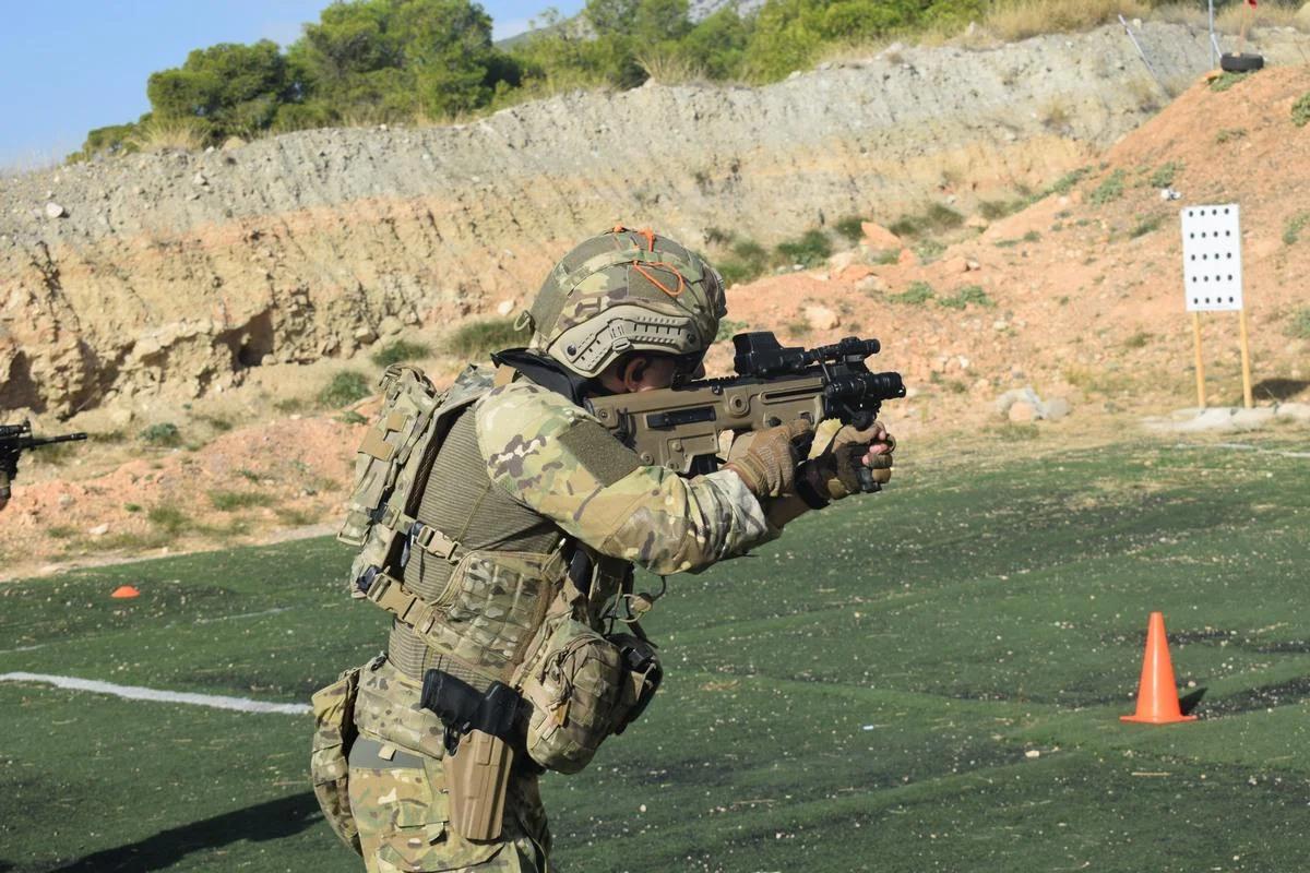 塞浦路斯国民警卫队突袭者在阿提卡新佩拉莫斯希腊陆军特种部队训练中心使用 IWI Tavor X95 5.56 毫米无托步枪进行快速反应演习。