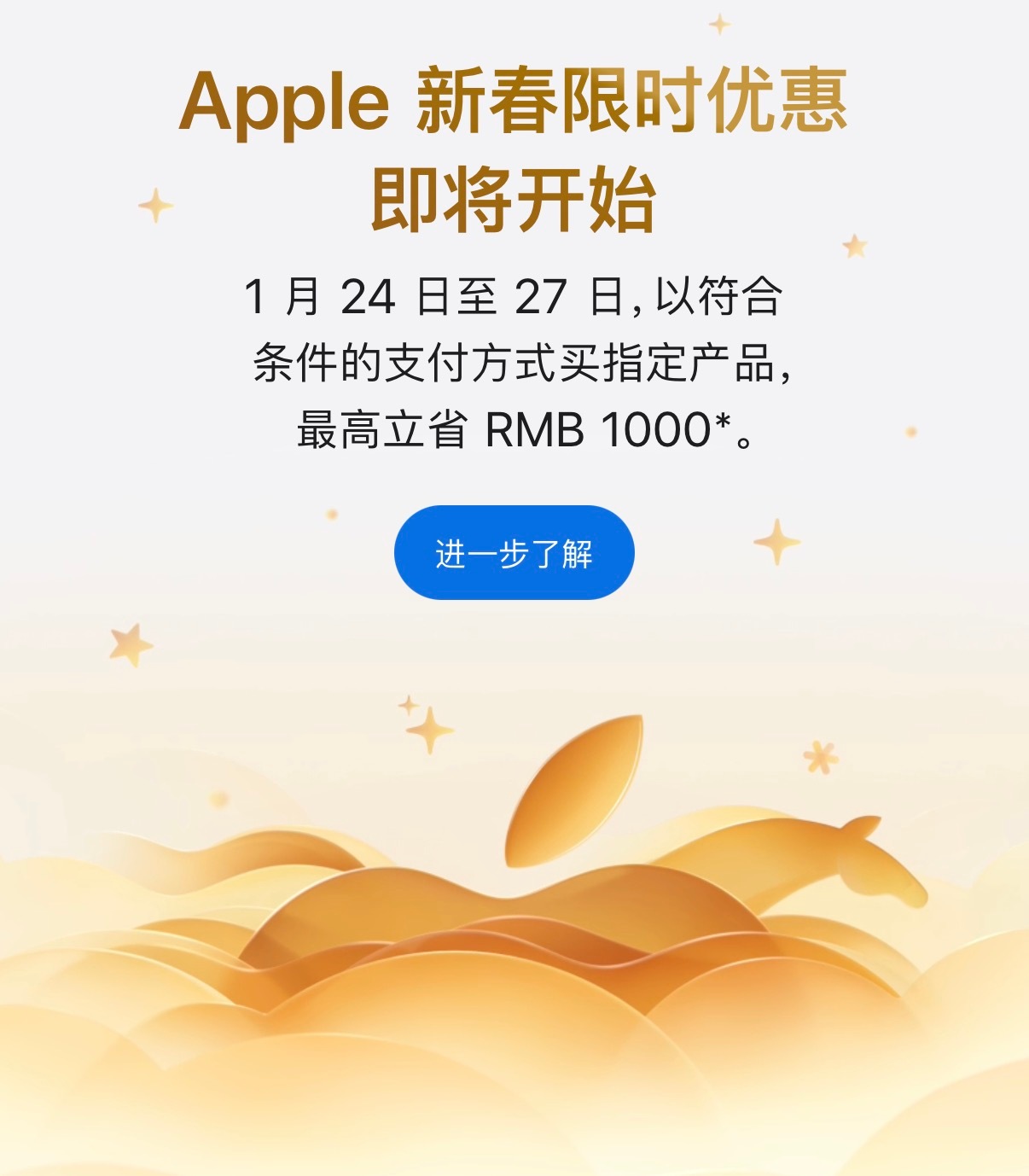 苹果推出新春优惠有总比没有好,苹果官方降价虽然不多,相比第三方平台就是意思意思。对只在苹果官方渠道买产品的人会有一些好处,能省一小笔钱。