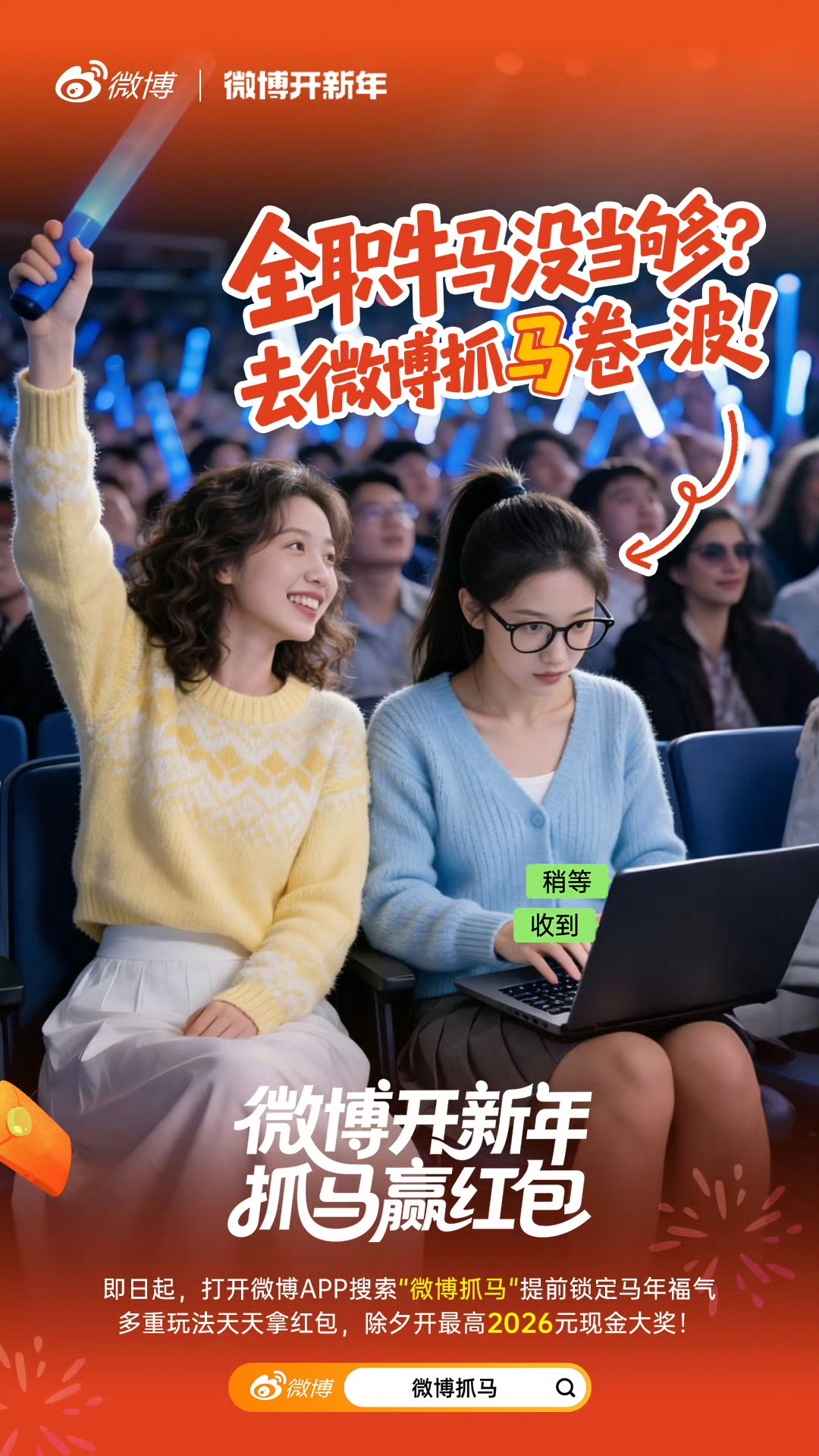 微博官方马年🐴活动来辣!必须支持即日起搜索微博抓马解锁专属好运红包🧧一起微博