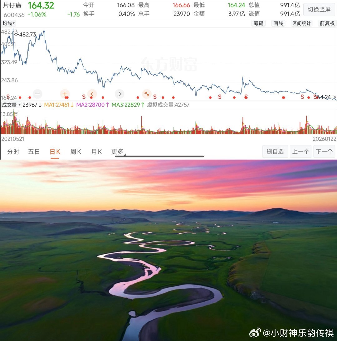 片仔癀从近500、跌到今天的新低164价值投资博主们、所谓的价值投资、您怎么看片茅说过多次了,最后说一次哦 片仔癀是好药、效果好、流芳百世 但是价格太高了,一般人能不能、吃得上? 连AI都在平权、创造民生福祉,接近公平 高价药、略违背趋势 可乐也是秘方、可是人人喝的起 估值35倍PE,合理偏上 500元的时候,百倍PE,价值博主不知道风险? 2019-2021,炒高后 后续、吃分红、吃常规增长 爆发力的主升没有了 2026年下半年、或有修复行情 目前筑底吧、熬上证指数 sh000001