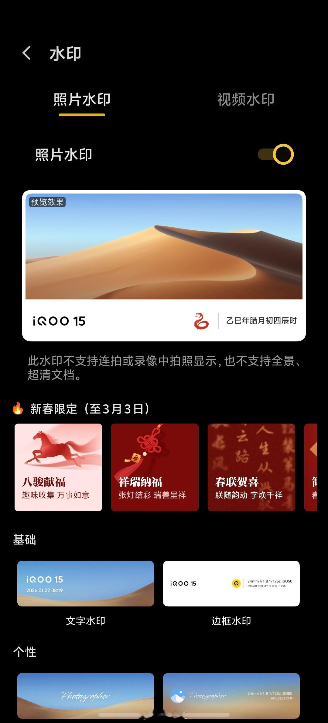 iQOO15推送了个新的更新包,新春限定水印来了。