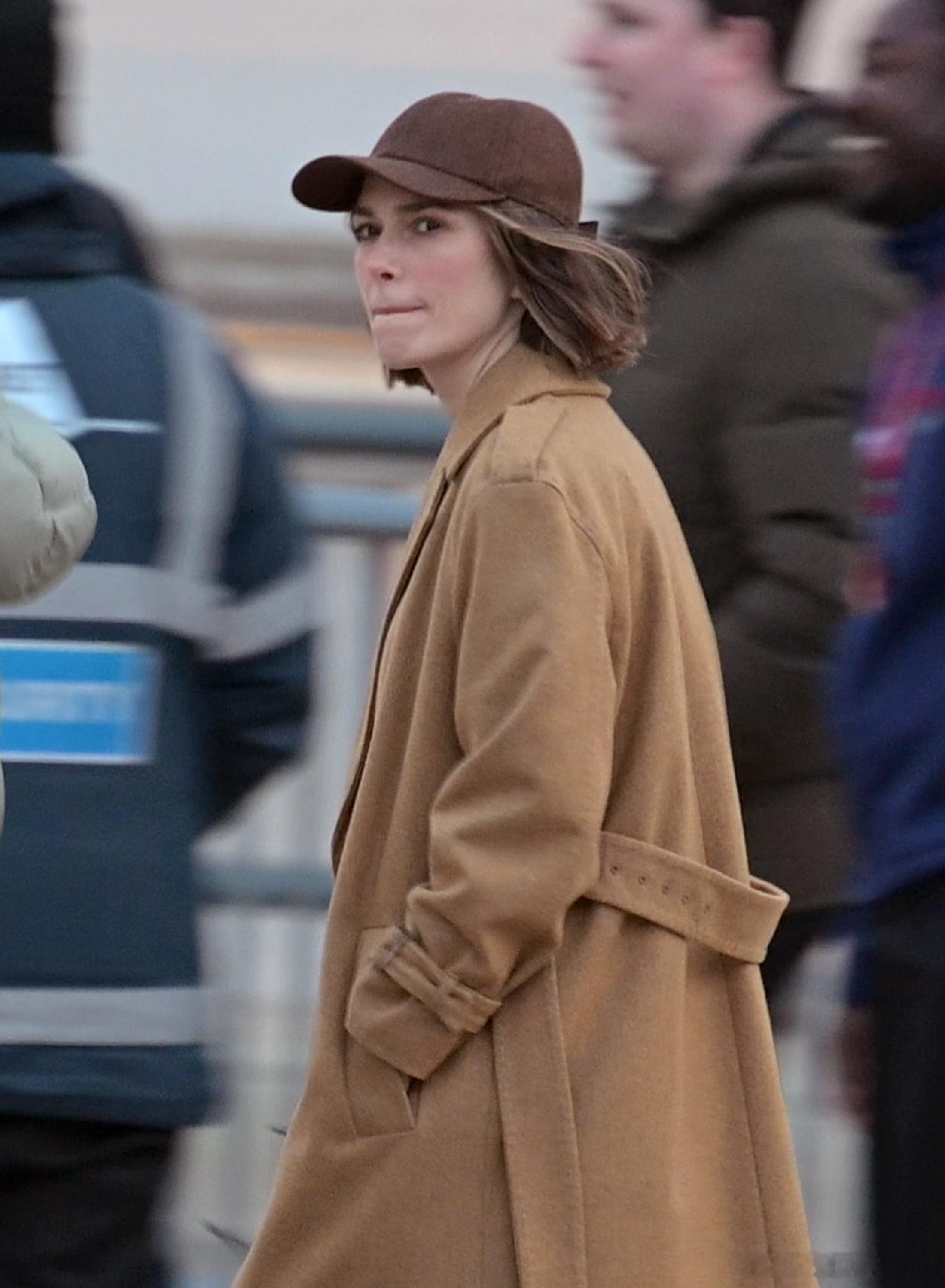 更多Keira Knightley凯拉奈特莉在伦敦为英剧《黑鸽》第二季开工的片场图,KK穿着大衣带着Cap帽和墨镜在街头进行拍摄
