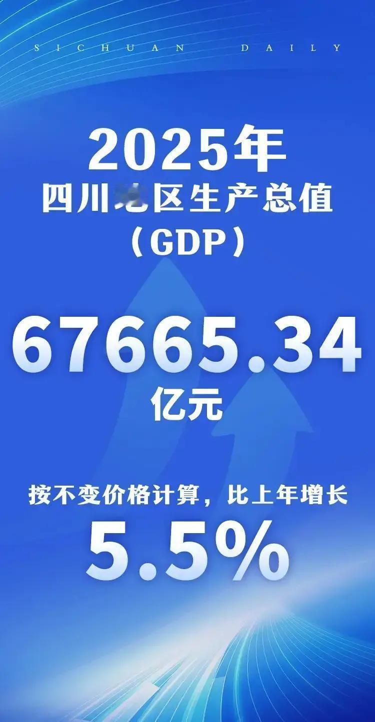 2025年四川经济交出一份扎实答卷,全省地区生产总值达到67665.34亿元,比上年增长5.5%。 这个增速跑赢了全国5.0%的平均水平,说明四川在复杂环境下稳住了阵脚。分产业第三产业贡献最大,增加值增长6.1%,服务业成为拉动经济的主力军;第二产业增长4.9%,工业底子依然厚实,尤其是规模以上工业增加值涨了6.5%,汽车产量时隔五年重回百万辆以上,新能源车、锂电池、工业机器人等新兴产品产量猛增,显示出制造业升级的势头很猛。第一产业稳中有进,增长3.7%,粮食蔬菜产量保持增长,保障了基本盘。 相比全国,四川的表现更突出,靠的是产业结构持续优化、新动能加速释放。尽管固定资产投资有所回落,但消费和服务业韧性强,整体经济运行稳中向好。这5.5%的增长不是靠单一领域硬撑,而是多点开花的结果,证明四川高质量发展路径走得对、走得实。未来继续抓牢新兴产业和内需潜力,四川经济底气会更足。四川城市排行 四川GDP