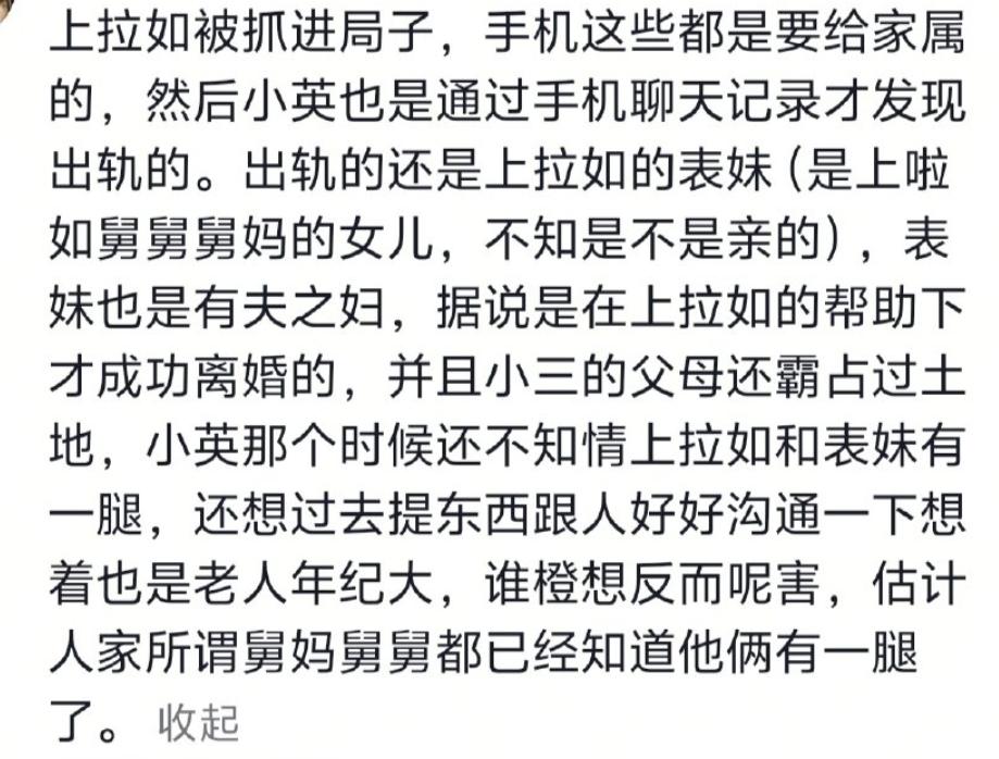网红小英在直播中自曝上拉如出轨表妹三年?相恋11年陪吃陪苦,换来的却是枕边人出轨表妹三年还倒打一耙说被诋毁? 更气的是小三父母还霸占女方家土地,说男方送的?真的想问,男人有钱就一定会变坏吗?11年的青春和付出,到底算什么啊💔? 看到上拉如出轨表妹三年的事,只觉得满心气愤又心疼小英。11年青春,她陪着对方熬苦日子、干农活,没享过半点福,换来的却是枕边人的背叛与谎言,被质疑时还反咬一口说遭诋毁,更过分的是小三父母还借机霸占女方家土地,实在太离谱。 这从来不是有钱就变坏的问题,而是人品的本质问题,骨子里的自私凉薄,才会让他无视多年的付出与情谊。 女方陪他11年,干尽农活吃遍苦,他转头养小三,小三父母还霸占女方家土地称是男方所赠,被问出轨还反咬一口说诋毁。 不禁想问,11年的同甘共苦,在一些男人眼里真的一文不值吗?有钱就变坏,难道是人性的通病?网红小英 小英直播间 你身边出轨的事情多吗 小英老公出轨