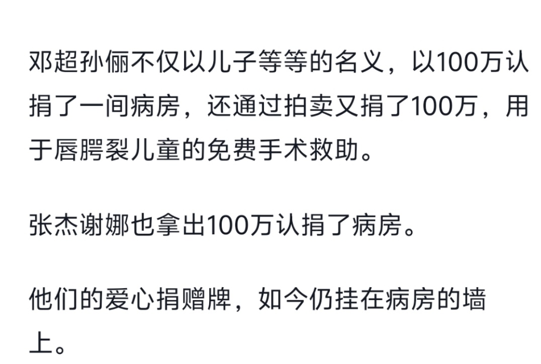 张杰谢娜给嫣然医院捐赠过病房李亚鹏说张杰谢娜捐赠过病房 爱心如流水线,张杰谢娜这对不仅撒糖,更在悄悄撒希望!从2011年为嫣然天使医院的病房点亮温暖,到百余间音乐教室变成孩子们的音乐梦境,需要爱心的地方,绝不缺席!