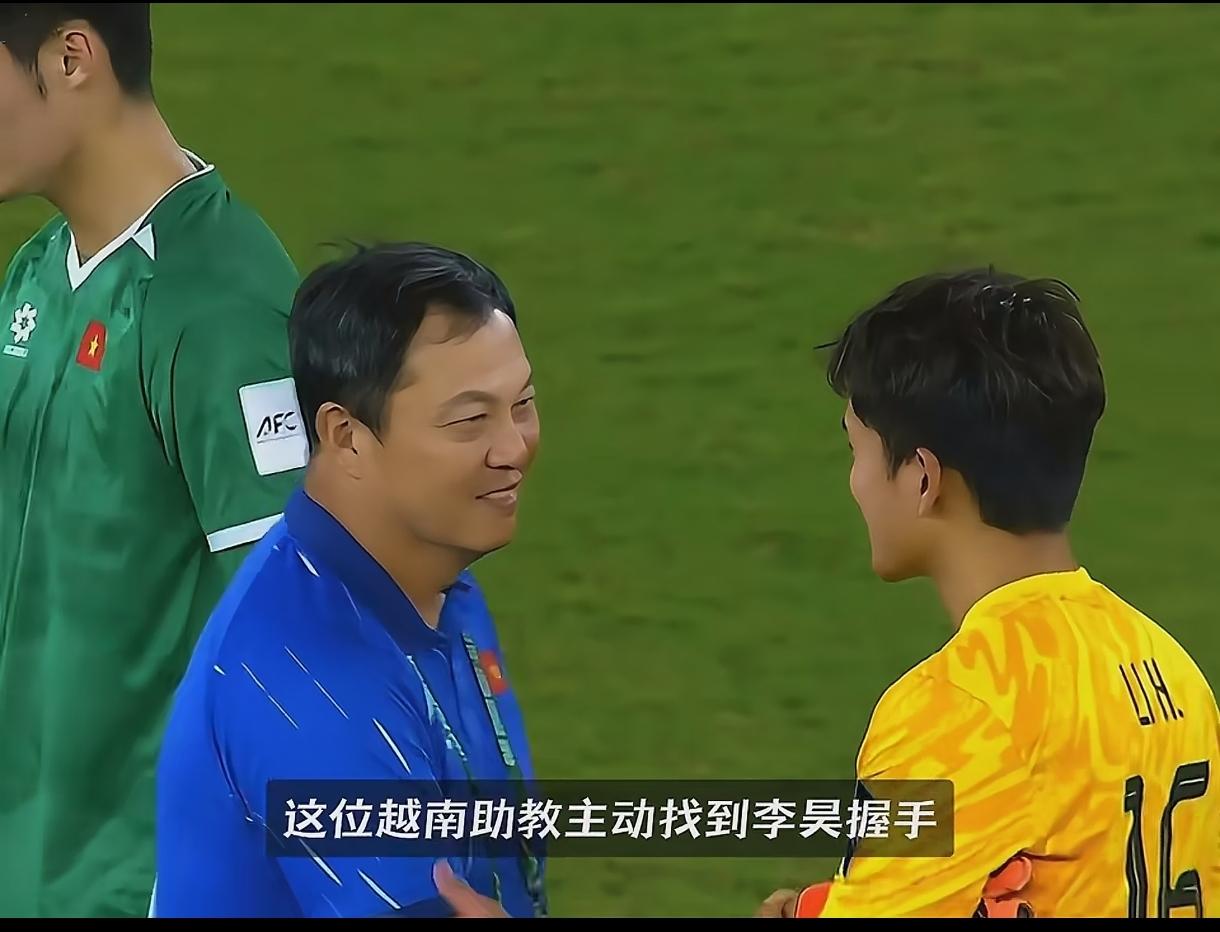 真没想到,这两位韩国前国脚一点没有小肚鸡肠,而是胸襟宽广,令人敬佩! U23国足3-0大胜越南队,国足门将李昊门神级别的出色表现,功不可没! 越南队主教练金相植,前韩国国脚,国足曾经的死敌,目前越南U23主帅,赛后发布会上相当大度地评价国足:“中国足球的进步有目共睹,可以说进步相当明显,他们配得上晋级决赛。” 可以说,金相植没有因为输球而气急败坏,胡说八道,这点值得敬佩! 而越南队U23门将教练李云在赛后居然与本场比赛发挥出色的U23国足门将李昊击掌,并满脸微笑摸李昊的头表示敬意,充满了欣赏! 而这位,李云在,是韩国队历史上最伟大的国门! 代表韩国队出战1994、2002、2006、2010四届世界杯,是范志毅那批国脚的绝对死敌人物! 我万万没有想到,这俩个韩国前国脚竟然如此有如此胸襟,如此大度! 这两位即将带领越南队在U23亚洲杯季军争夺战对阵自己的国家,韩国队! 祝好人好运!
