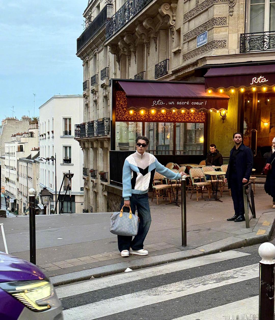 在家门口偶遇王鹤棣这是什么令人羡慕的剧情!王鹤棣背后的外国路人就这样笑眯眯盯着王鹤棣