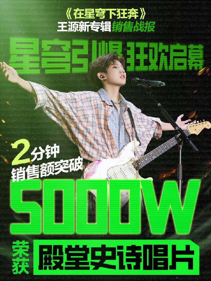 王源新专辑《在星穹下狂奔》2分钟销售额破5000W,达成殿堂史诗唱片,这个源儿怎么这么牛🐮 王源实体专辑